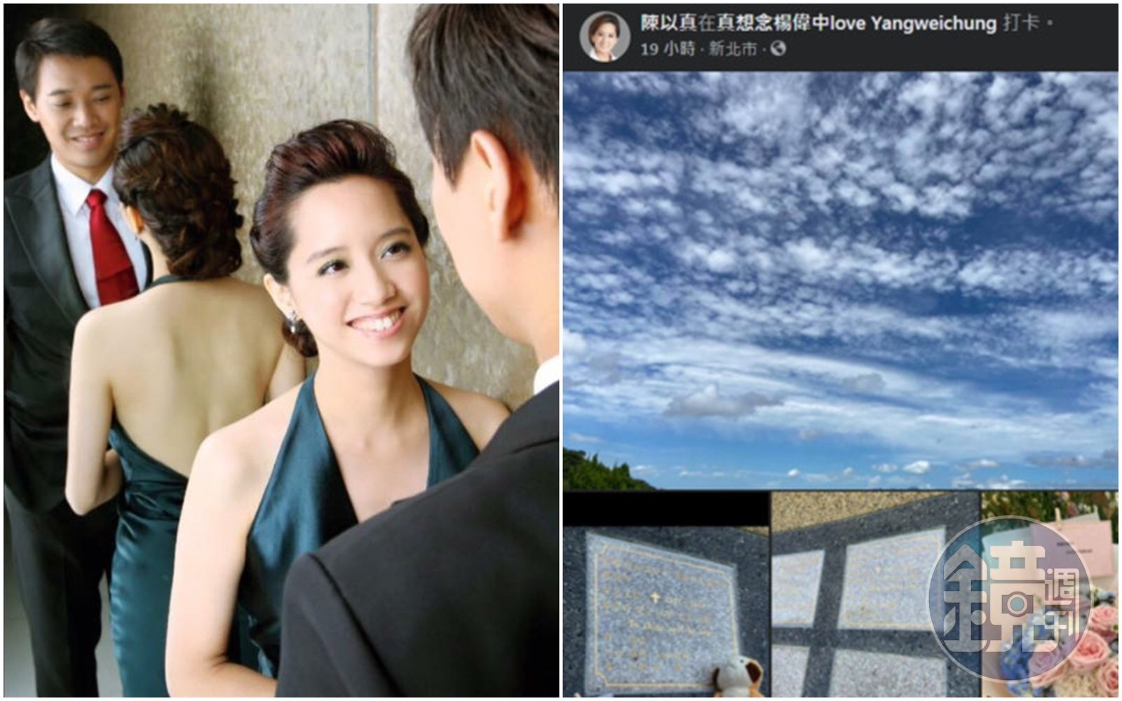 陳以真臉書停擺長達1年,昨日更新動態,在打卡處寫上「真想念楊偉中love Yangweichung」,上傳藍天白雲的照片以及墓碑照,上頭寫著「儒雅的知識份子,勇敢的正義鬥士」,周圍擺著鮮花和玩偶,應該是帶著家人去探視亡夫。主播陳海茵留言鼓勵:「以真加油、保重!祝福未來一切平安健康。」