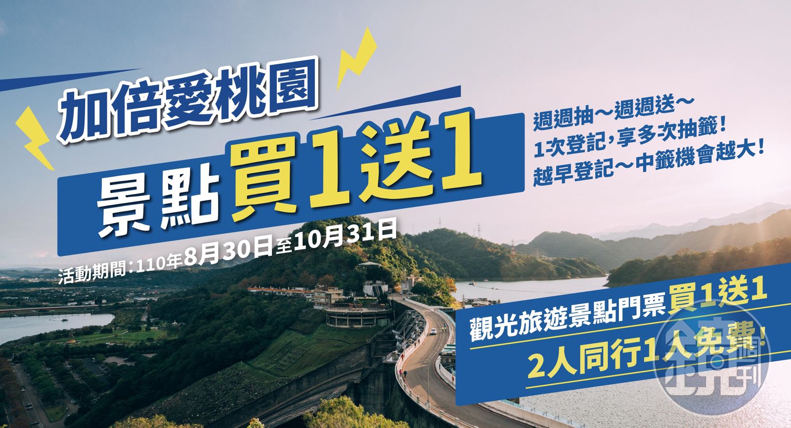 「加倍愛桃園、景點買1送1」共6梯次抽籤