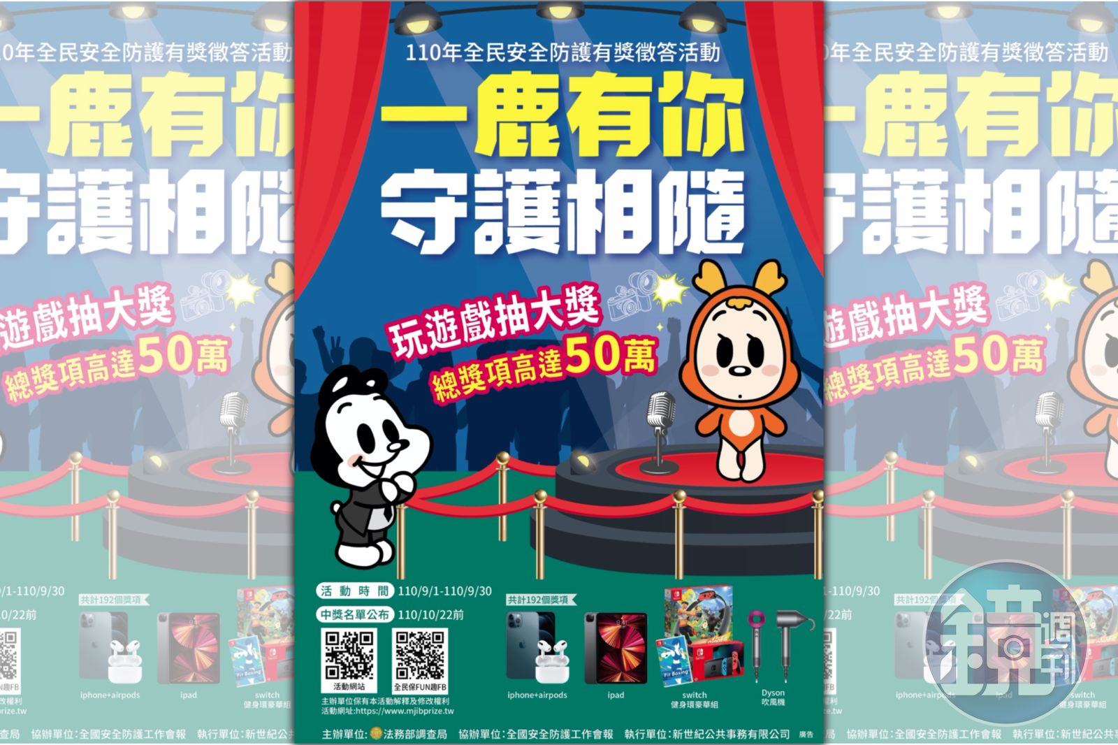 調查局表示,詳情請上網搜尋「法務部調查局」,或上活動網站(https://www.mjibprize.tw),填寫基本資料加入遊戲,回答完5題問題,除了安全防護練習生外皆有抽獎資格,也別忘記在活動完成後下載肯德基、必勝客的專屬套餐優惠券,民眾不僅能透過遊戲認識法務部調查局外,還能享有專屬獨享餐。