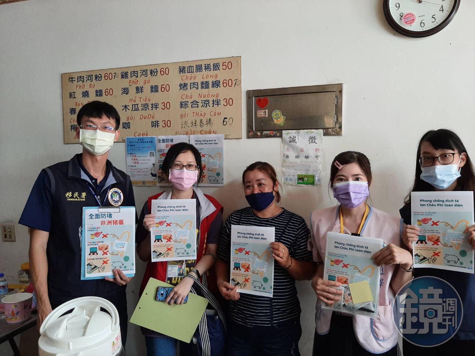 近期國內首度查獲帶有非洲豬瘟病毒的越南走私肉品,為守護食安,嘉義市專勤隊及服務站特別與越南籍通譯陳竹莉到轄內小吃店一一的向新住民朋友宣導選購食材時應特別注意來源及標示,看到來路不明的產品勿用。另外服務站還結合了新住民朋友用多國語言告訴來自母國的親友不要任意購買或寄送來路不明的肉品,共同防堵非洲豬瘟。