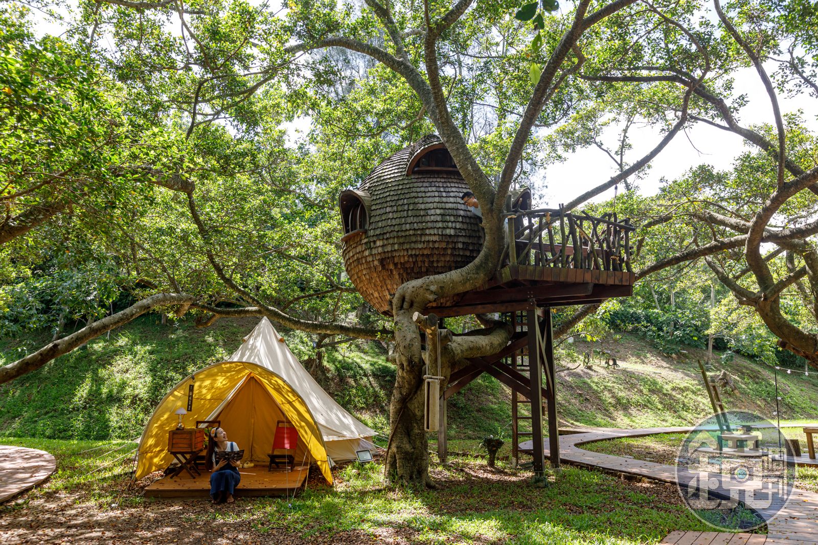 除了經典的山那村營地,園區內還有座奇幻露營區「好夢里」,榕樹森林裡有個巨大的月亮與3座樹屋,童趣中帶點魔幻感。樹屋由蕭有志老師創作,每座樹屋都藏著自己的祕密,雙層的「獵人碉堡」有彈弓能考驗眼力,使用油桐果當子彈,體驗一日獵人的樂趣;「天空書房」實現小時候爬上枝頭看書的夢想,跌進浩瀚書海中,不會有人來打擾;進入「聲之屋」能讓心靈沉澱,聽聽屬於大自然的聲音寶藏,讓長大後的童心未泯重新發芽。