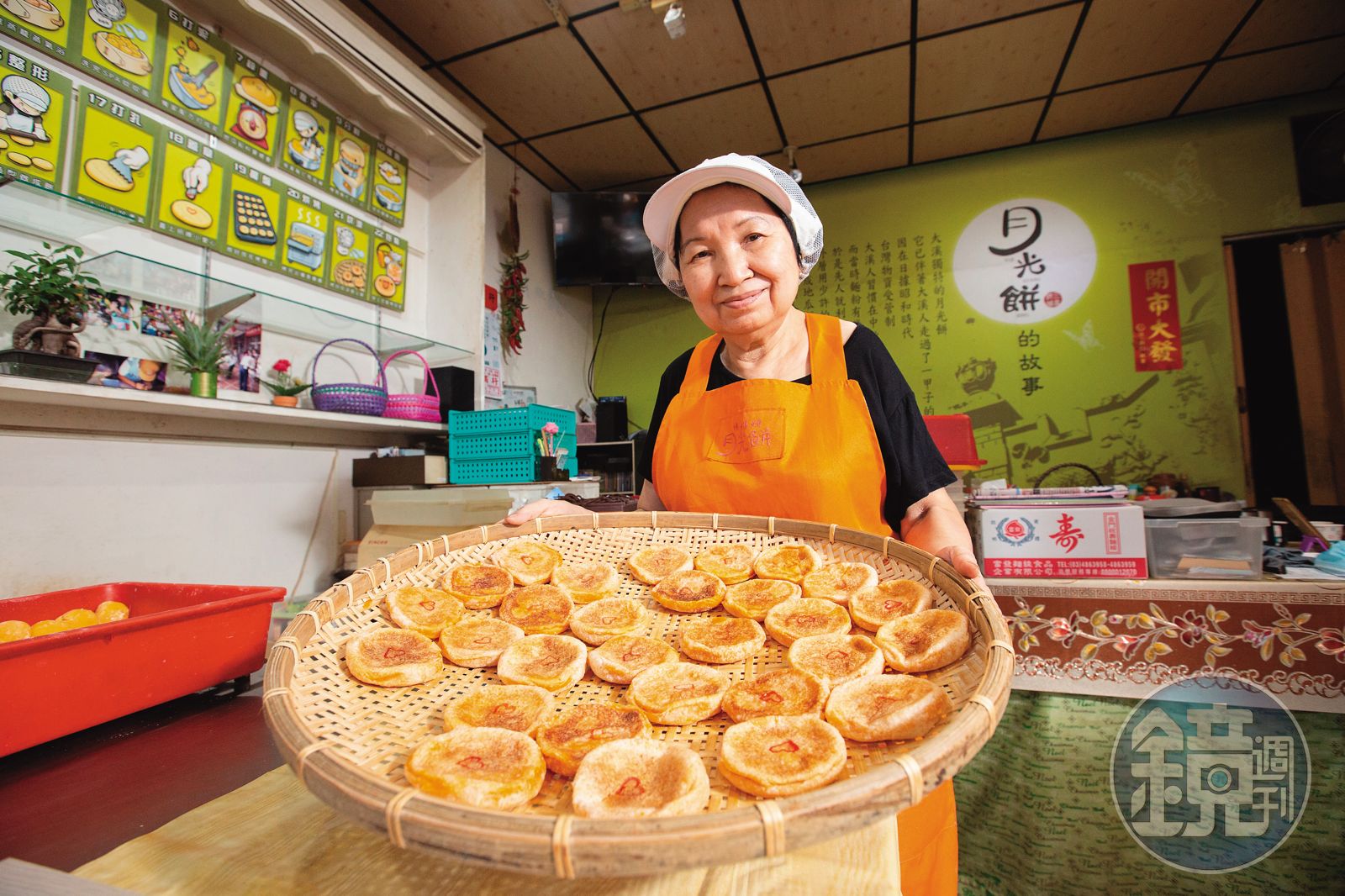 至於品嚐方式,由於月光餅食材單純、少油少糖,吃起來不如酥皮月餅般會令人感到口乾舌燥,陳媽媽說,「月光餅就算不搭配茶水,直接吃也不會太乾。剛出爐時趁熱吃,香氣最濃郁;冷藏後冰冰涼涼地吃,可以享受到彈牙口感。最建議的品嚐時間,則是出爐後第二天,當餅皮回軟後,吃起來更是皮薄Q軟。」