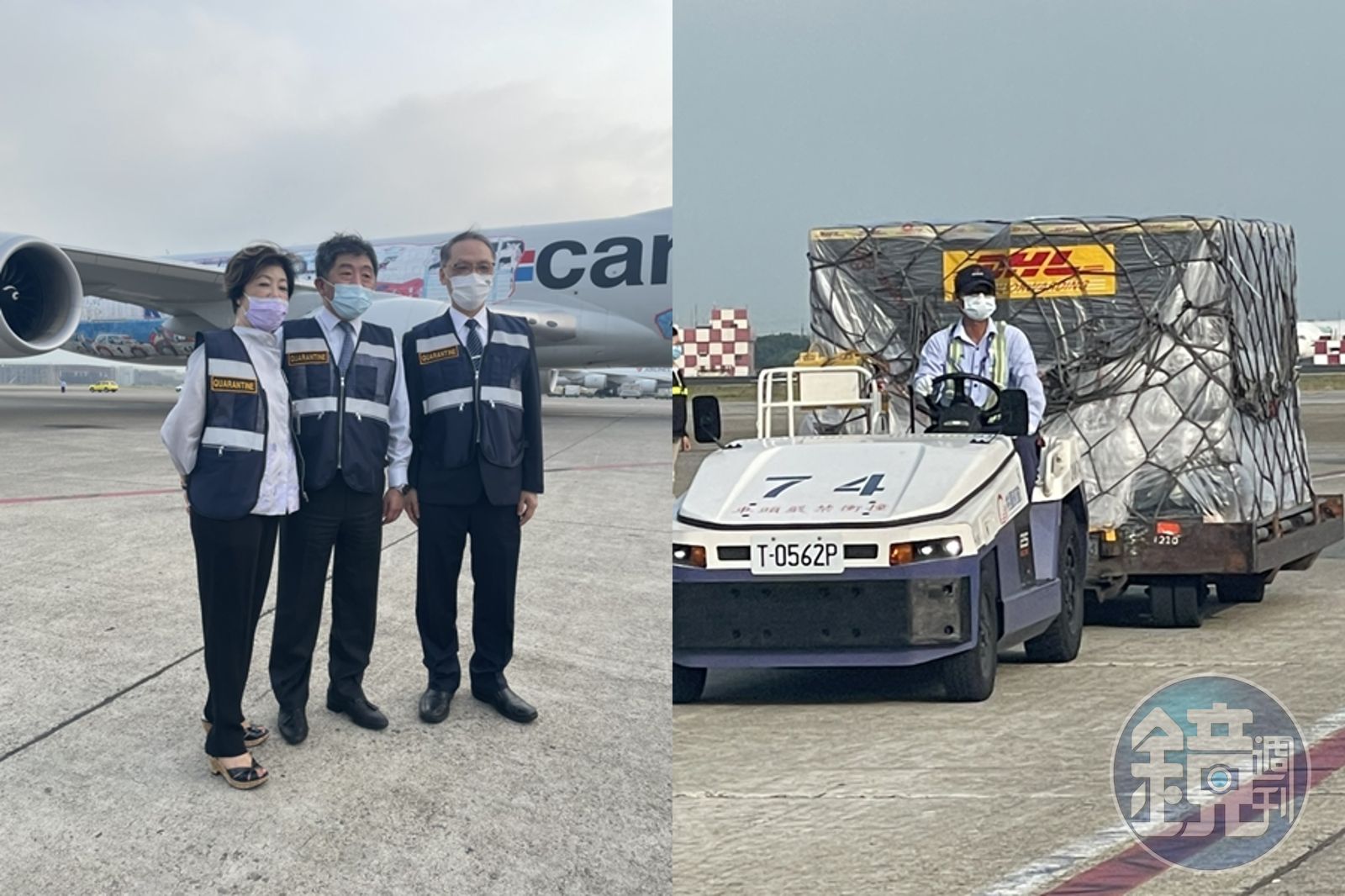 而本來此批93.2萬劑的疫苗昨日晚間即可抵台,不過因一些原因延誤於今日早上7時才運抵桃園機場。而在昨日BNT疫苗登機前曝光的照片中,可見疫苗裝箱外還掛有印上「復必泰」的布條,然而在到達台灣後,該布條就已經不見蹤影。