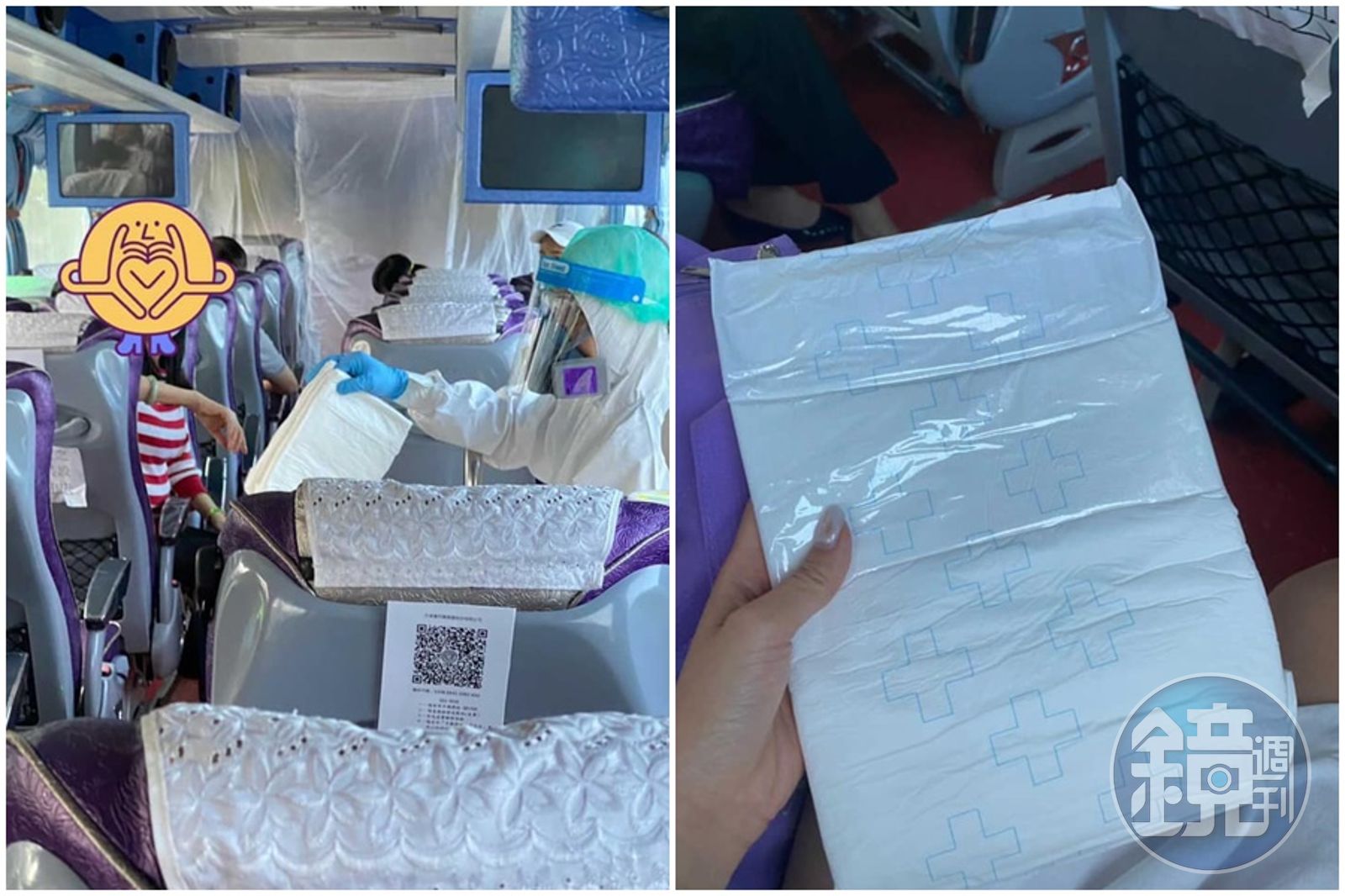 最慘的是,途中家人跟組員想上廁所,得到的回覆是「被框列者不能上廁所」,要上廁所「會發紙尿片」,但客運根本沒有換尿片的隱私空間。該機組員不解,當時發放尿片時明明還在台北,他下午3點半被接上車,下午5點半才準備發車離開前往南投,不禁質疑「政府的做法是不是也違背防疫規範?」控訴對待組員的方式「連最基本人權都不給!」