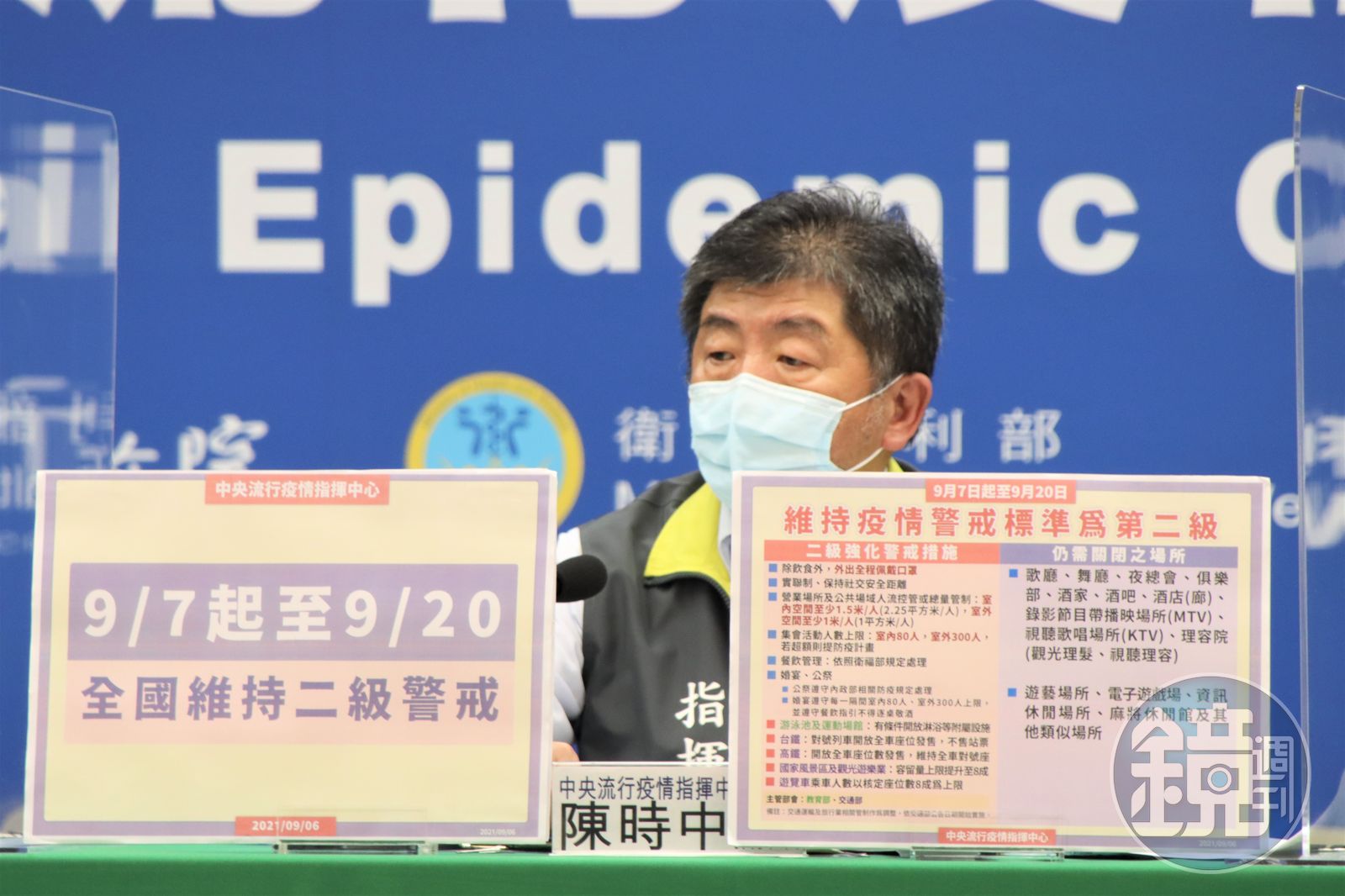 陳時中指出,考量國內疫情雖趨緩但仍有零星不明感染源之本土病例,經與相關單位溝通討論及評估後,於明日起至20日維持全國二級警戒,不過也放鬆相關管制規定,包含放寬集會人數上限、開放運動場館淋浴設施、國家風景區及觀光遊樂業容留量上限提升至8成等;不過歌廳、舞廳、夜總會、俱樂部、酒家等八大行業則要繼續關閉。