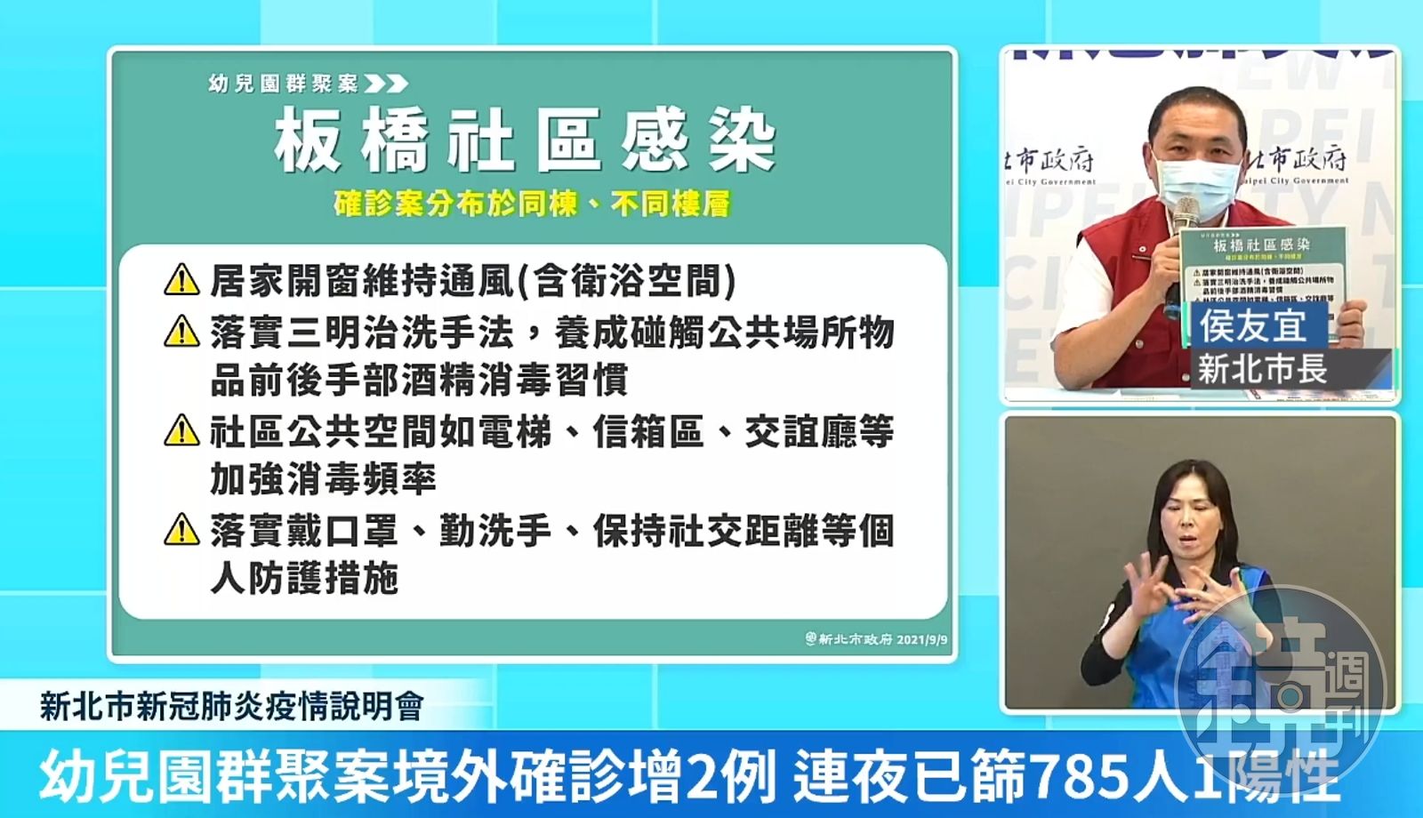 面對變異株來勢洶洶,侯友宜提醒大家要提高警覺,這次社區大樓確診個案屬「同棟、不同樓層」,並提出4點呼籲:居家開窗維持通風(含衛浴空間);落實「三明治洗手法」,養成觸碰公共場所物品前後手部酒精消毒習慣;社區公共空間如電梯、信箱區、交誼廳等加強消毒頻率;落實戴口罩、勤洗手、保持社交距離等個人防護措施。