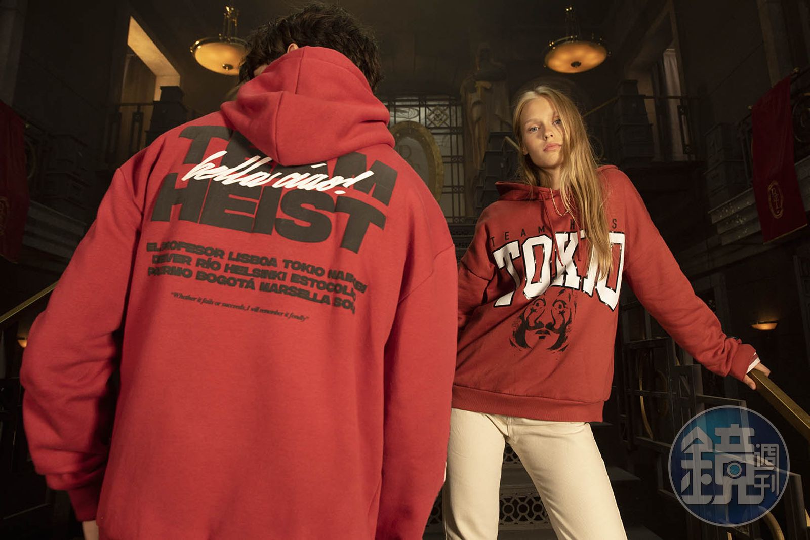 女款《紙房子》聯名帽T NT$1,490 Pull&Bear。(Pull&Bear提供)隨著今年底「紙房子」將在西班牙銀行裡邁入終章,因此在圖樣設計上除了最迷人的達利面具,加入貫穿全劇的關鍵女主角TOKIO,並延伸出象徵同袍情誼的「TEAM HEIST」,也意味著這部影集由爆紅話題邁入時代經典,粉絲不能錯過。