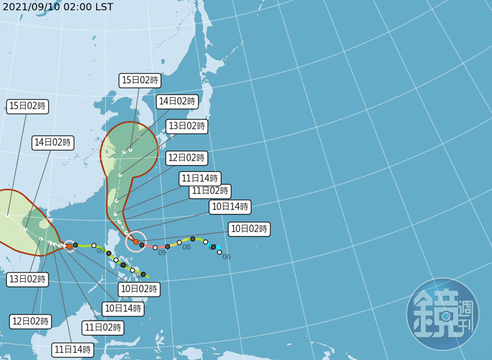 吳德榮今於「三立準氣象· 老大洩天機」po文分析,強颱璨樹受到「太平洋高壓」導引,向西北西轉西北、再轉北朝台灣前進,預估明、後天(11、12日)威脅最大,但都與路徑息息相關。