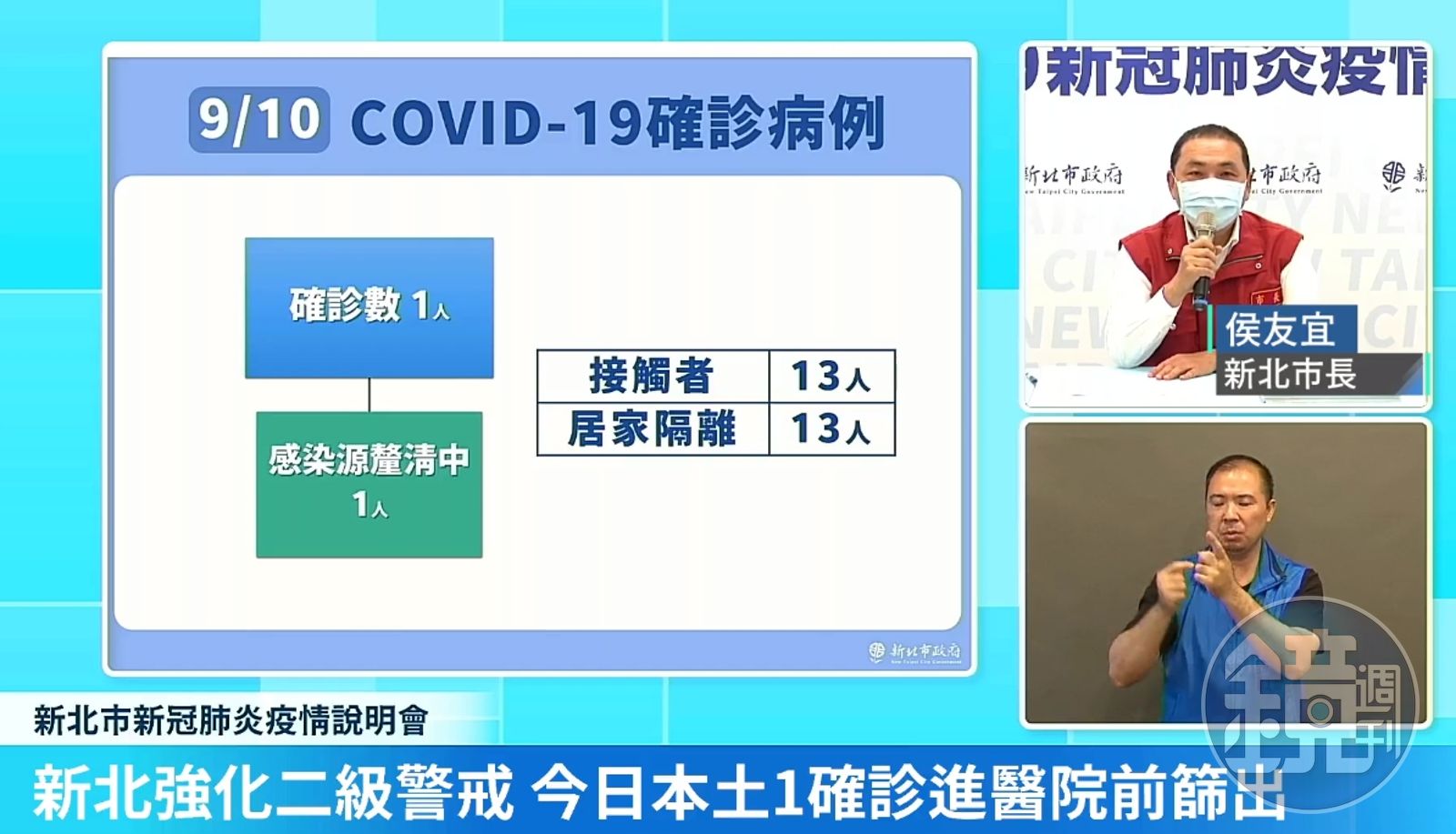 新北今天新增1本土案例位於深坑,與幼兒園染疫基本上沒有關聯。(翻攝自侯友宜臉書直播)發布時間:2021.09.10 16:36 臺北時間