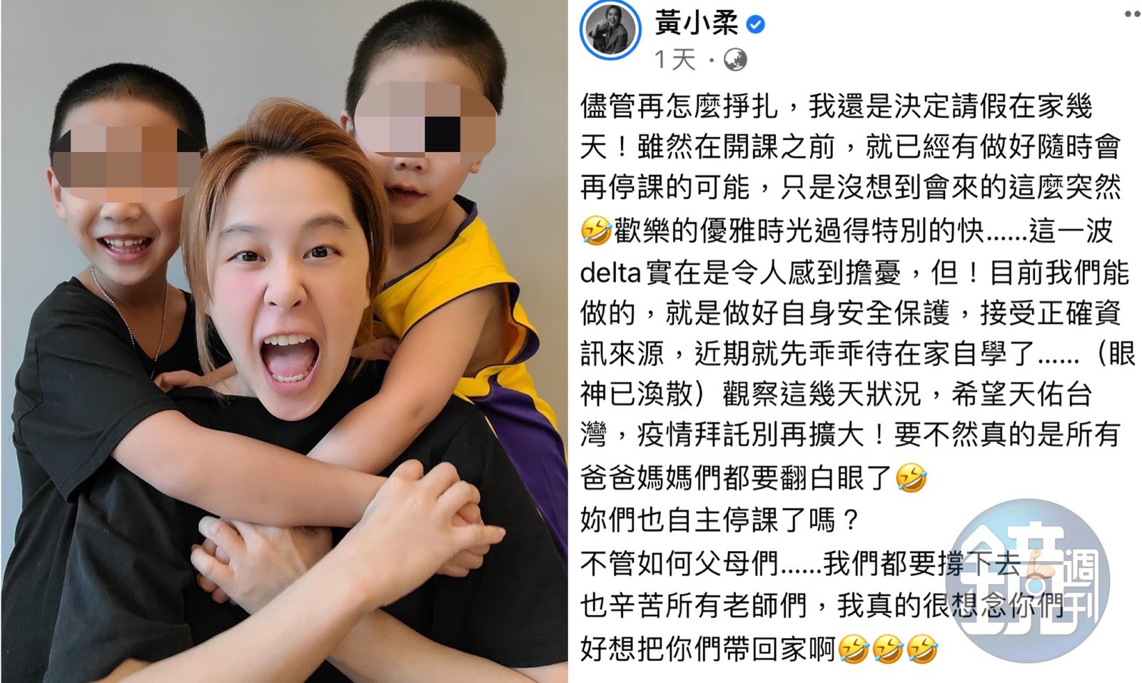 面對疫情再次升溫,黃小柔先是在臉書詢問網友:「要自主停課嗎?好掙扎啊⋯姐妹媽媽們,妳們目前怎麼決定?」引來網友熱烈討論。過不久,黃小柔做了決定,「儘管再怎麼掙扎,我還是決定請假在家幾天!」黃小柔坦言在開課之前,就已經有做好隨時會再停課的可能,「只是沒想到會來的這麼突然,歡樂的優雅時光過得特別的快⋯」。
