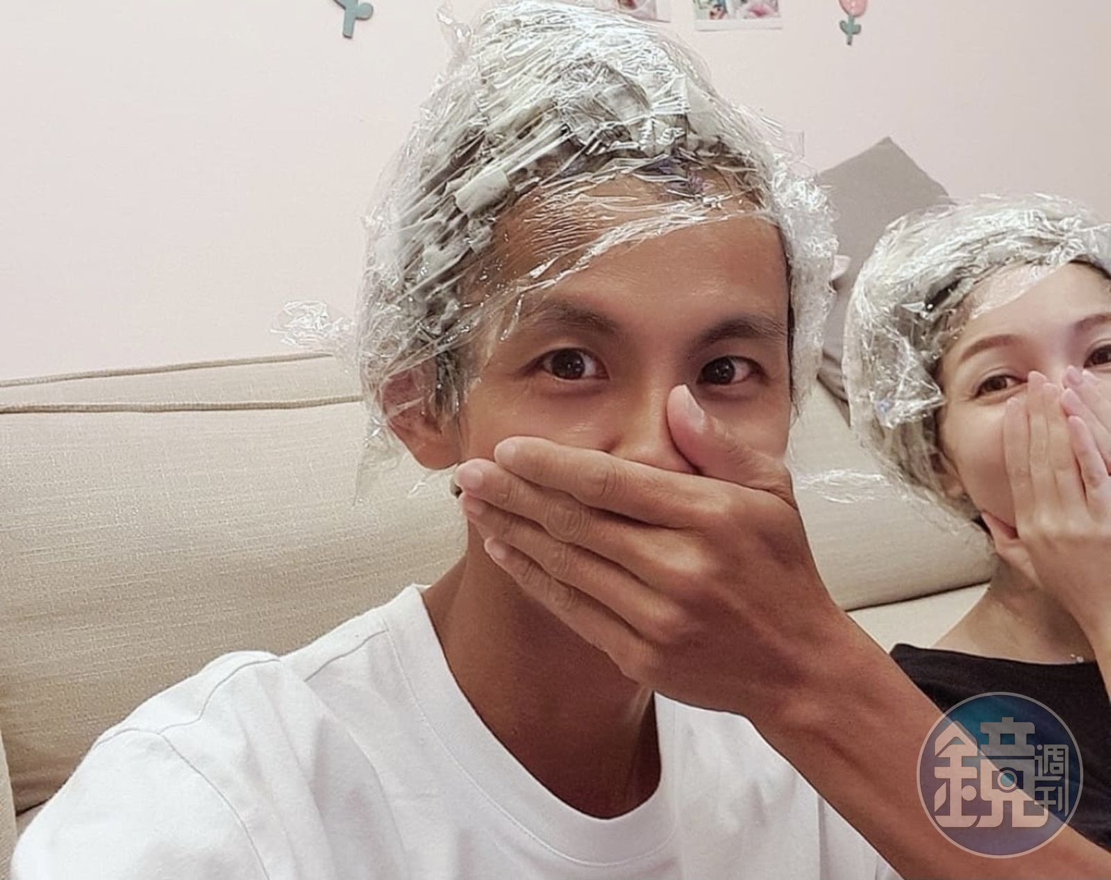 阿翔與老婆Grace在家DIY染髮。(翻攝自阿翔IG)發布時間:2021.09.10 13:50 臺北時間