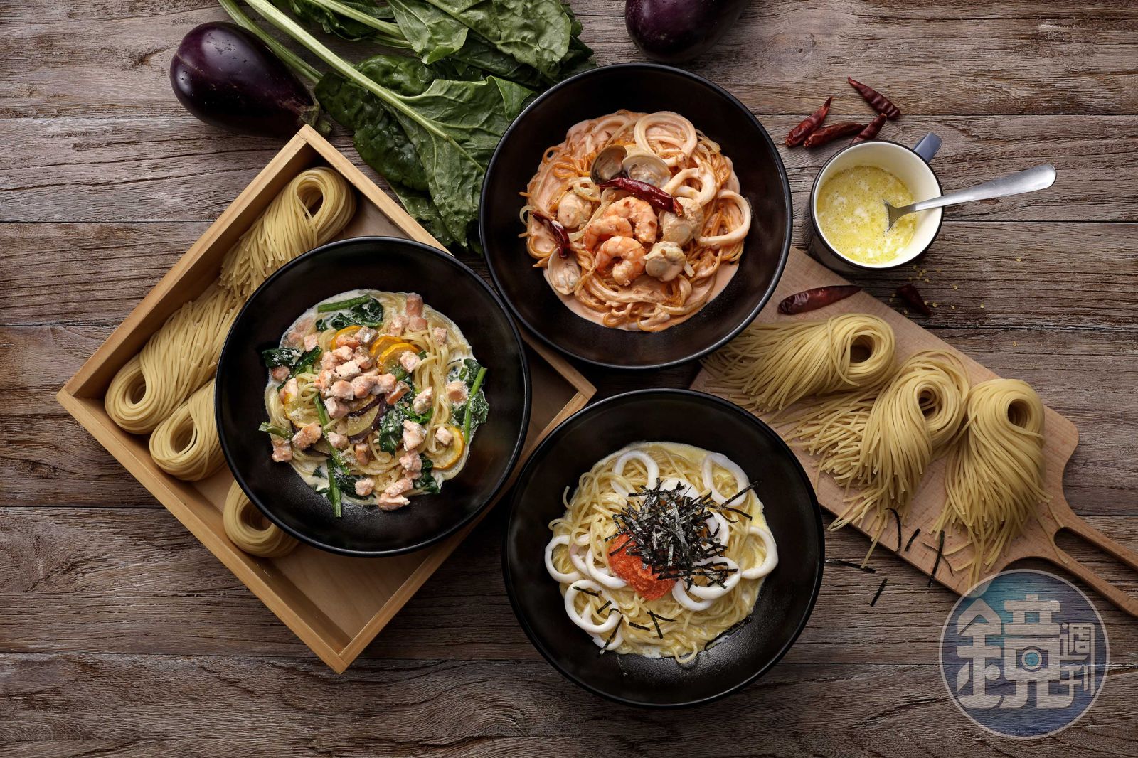 源自靜岡縣的BEPPIN食堂,強調透過與當地小農契約合作,吃得到滿滿新鮮美味蔬果,延續健康蔬食概念,台灣「BEPPIN PASTA」以甜菜根、羽衣甘藍、紫薯、蝶豆花、竹炭和杜蘭硬質小麥粉,製作出紅、綠、紫、藍、黑及黃色共6種天然色調的小巧貝殼麵,運用完美比例的水分改變麵的硬度、彈力,讓貝殼麵不僅色彩繽紛,還能Q彈不軟爛,富有嚼勁。為了讓饕客能輕鬆品嘗貝殼麵的魅力,菜單上任何一道義大利麵(湯麵除外),都可加價20元升級成彩色貝殼麵。