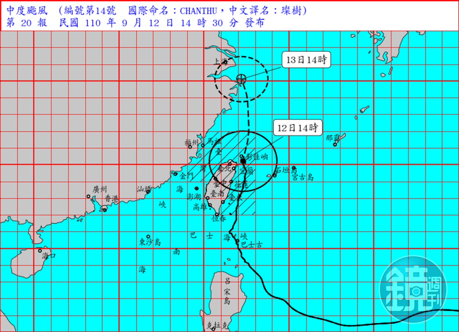 中央氣象局今(12日)下午2時40分召開記者會說明,璨樹以每小時28轉17公里速度,向北轉北北西進行,其暴風圈仍籠罩南投、台中以北及東北部、東部陸地,北部及東北部風雨持續中,中南部山區雨勢逐漸增強。