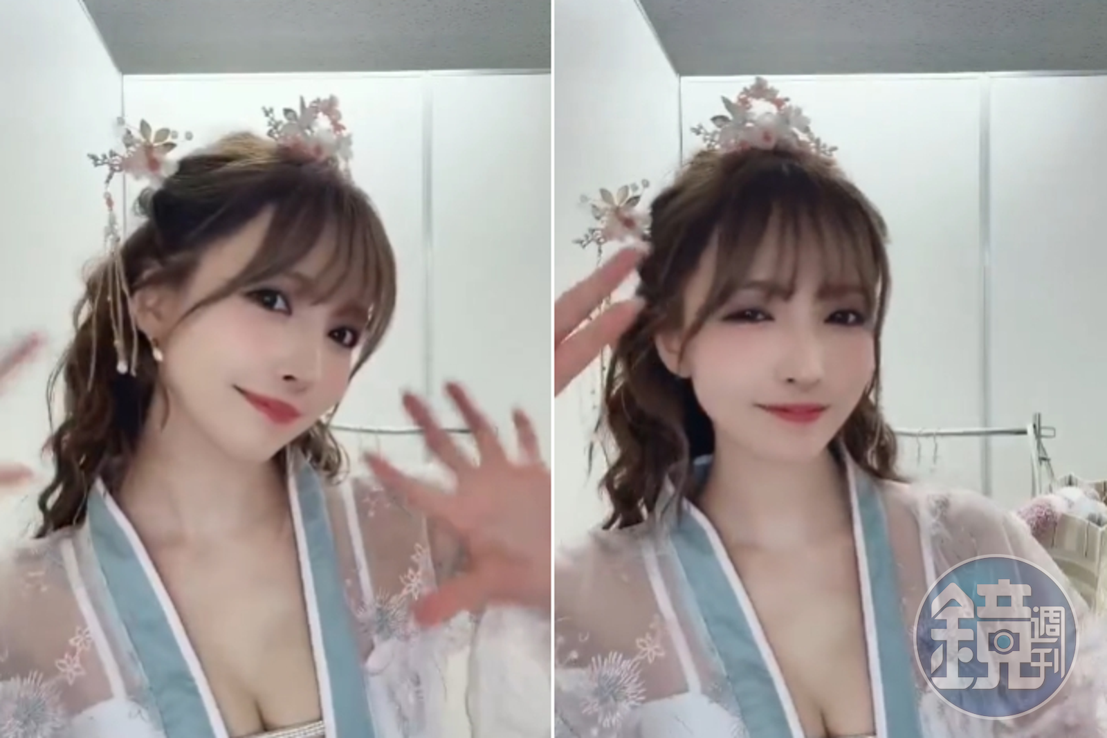 三上悠亞曾參加過偶像女團,後拍攝AV作品出道,可愛的臉蛋與姣好的身材讓她在各地收穫不少粉絲的心。日前她在自己的微博發布一段15秒的影片,只見她穿著前襟半開的漢服在鏡頭前擠眉弄眼,隨著音樂手舞足蹈,看起來心情相當不錯,直呼「漢服好可愛」。