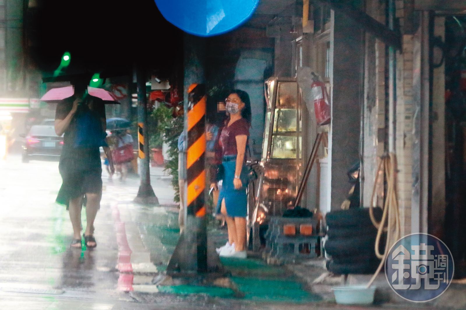 用餐1個多小時後,吳東諺先行離開取車;穿著貼身上衣及牛仔窄裙的白家綺則大秀窈窕曲線、與女兒們一起等待吳東諺。沒多久,吳東諺開著白色休旅車出現,擔心家裡的女人們被雨淋濕,還刻意將車子停在遮雨棚下,從小動作就看得出吳東諺對白家綺及女兒們的貼心。