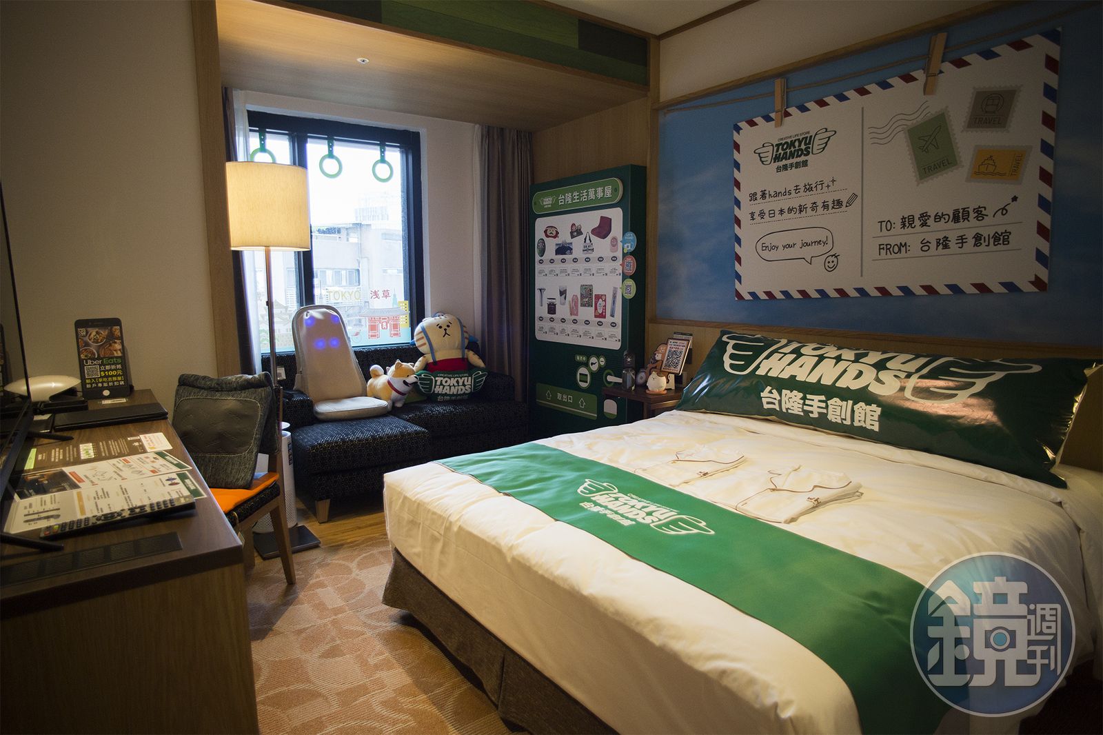 身為台隆手創粉絲,住進這間肯定會敗家的「跟著HANDS去旅行」主題房,以富士山、電車、自動販賣機為設計元素,營造搭著電車到日本盡情觀光購物的氛圍。