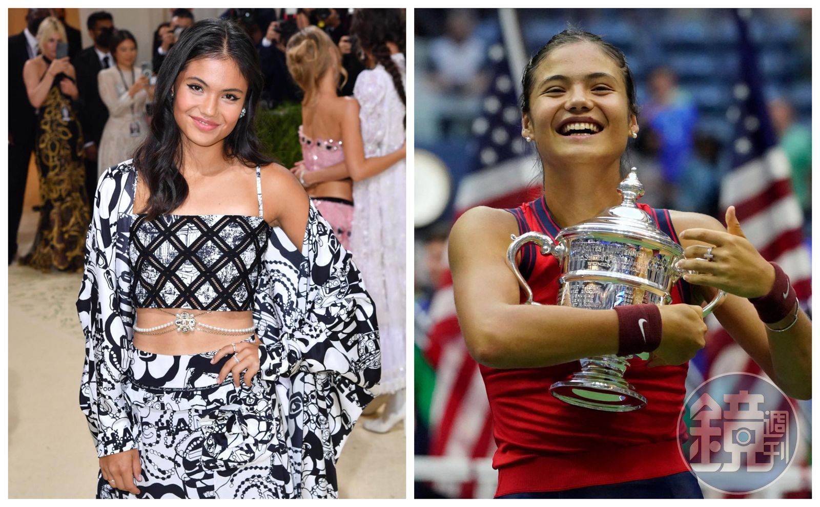 拉杜卡努週六獲得美網冠軍後,沒有立刻返回倫敦,而是留在紐約四處逛逛,享受人生新篇章。她今(14日)出席有「時尚界奧斯卡」之稱的MET Gala晚宴,獻出紅毯第一次,穿著一席黑白色CHANEL印花洋裝,配戴珍珠首飾,甜美迷人。