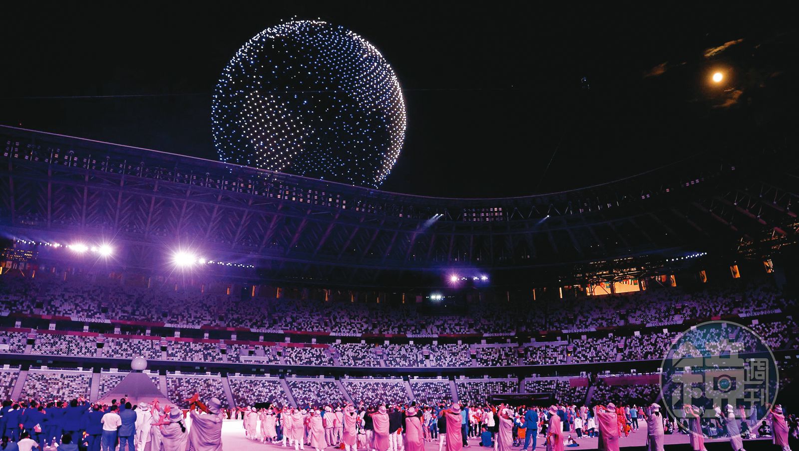 漆黑的夜空中,1824架無人機冉冉而起,伴隨著國際群星演唱已故披頭四主唱約翰‧藍儂(John Lennon)訴求反戰和平的名曲〈想像〉(Imagine),點點星光的機身先拼出本屆東京奧運會徽「組市松紋」圖樣,緊接著又快速變換成立體感十足的旋轉地球,然後拼湊出地球五大洲,透過畫面傳遞全球,不僅感動電視機前觀賞東奧開幕式的觀眾們,上千萬網友更上奧運官網點讚,寫下「有夠酷」、「太強了」、「超美的」、「好想在現場看」等讚美之詞。