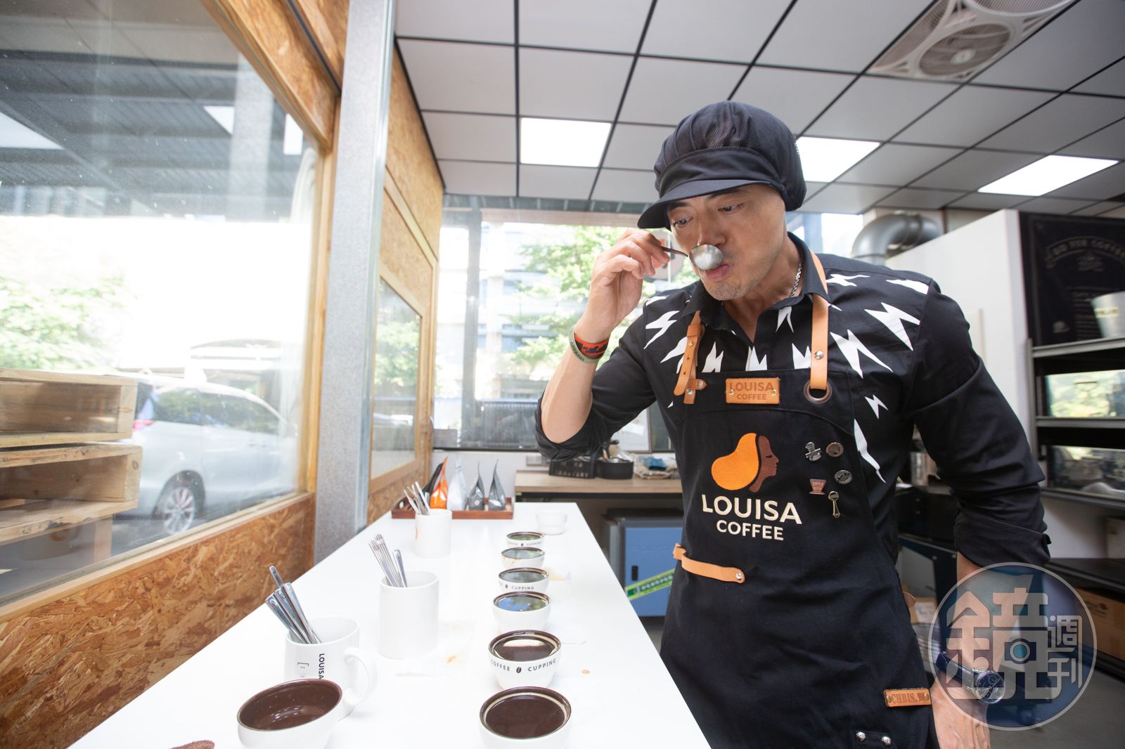 小咖啡店沒背景,他靠勤懇、大膽,辛苦存活。早期有客人指定要麻油香的咖啡豆,他花2個多月研發配方,讓烘豆量翻倍成長。開店隔年,7-ELEVEn找來桂綸鎂代言,強打CITY CAFÉ,路易莎生意下滑1/3,他推出現榨水果茶應戰,咖啡路一直走得戰戰兢兢。