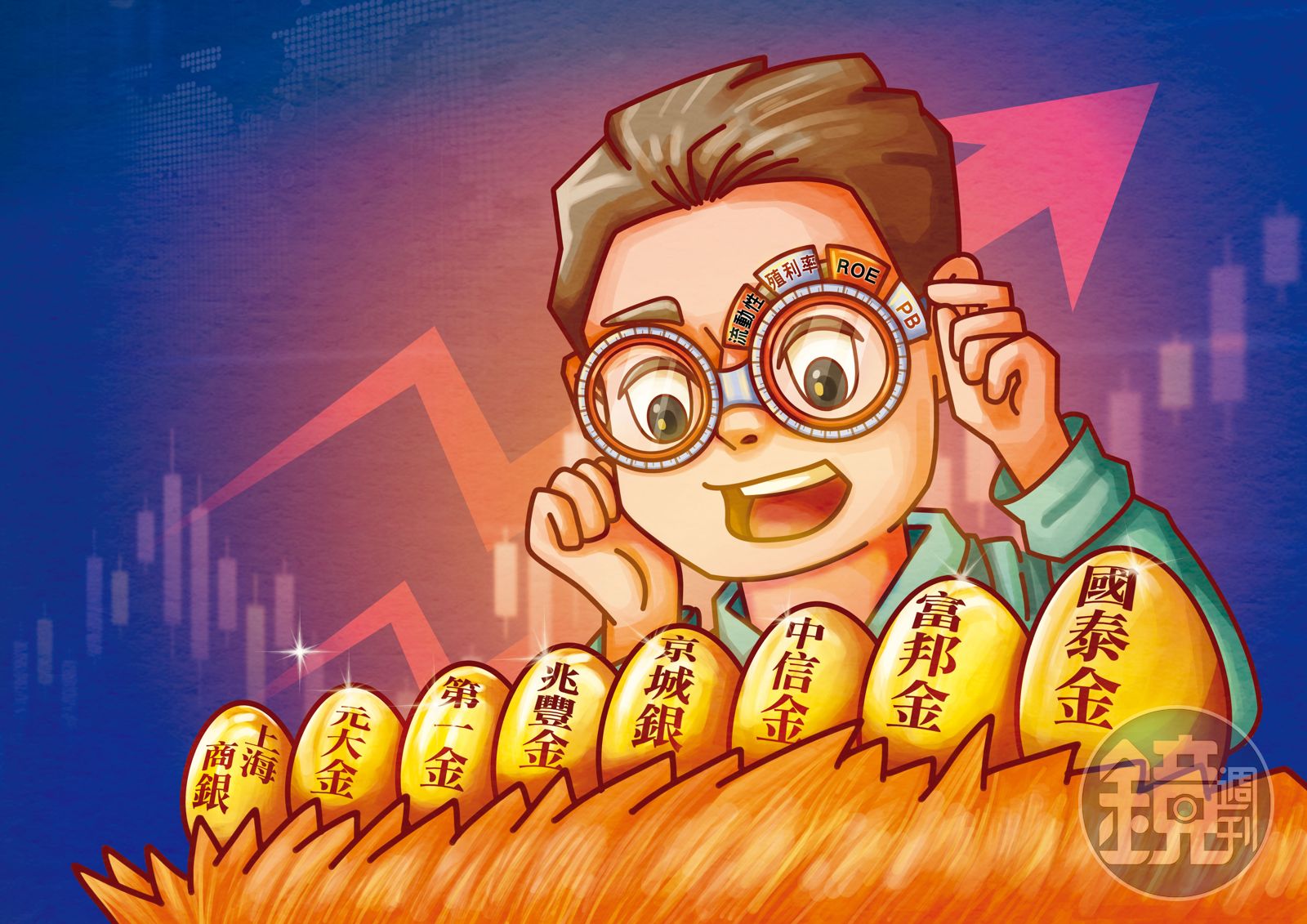 其次,是觀察股東權益報酬率,「ROE就是金融股的獲利表現,若趨勢逐季向上,評價有機會調升,驅動股價淨值比往1.5倍靠近,反之就會調降,不是長期投資首選。」詹佩玲認為,壽險為主的金控受惠資本利得及升息,今年來獲利年增強勁,是這波行情下最看好標的。