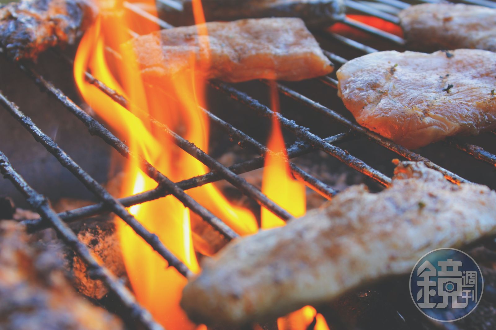正式烤肉前可以在烤網上塗一層肉片的油脂,之後烤肉食材較不會沾黏。