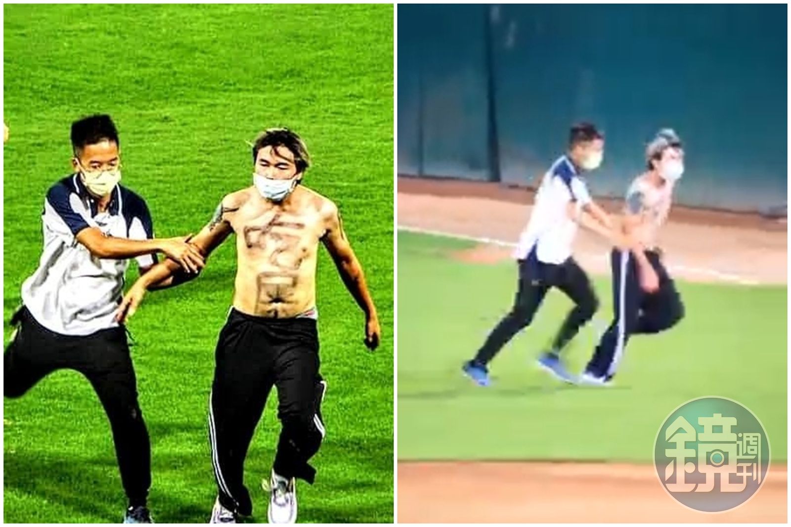 今晚在新莊棒球場的賽程是富邦悍將對上樂天桃猿隊,雙方交手到4局上半時,吃屎哥裸著上半身從約2米高的看台處跳進球場內,並往中外野奔跑鬧場,比賽因此中斷,最後警消獲報派員前往現場,將他送醫治療。