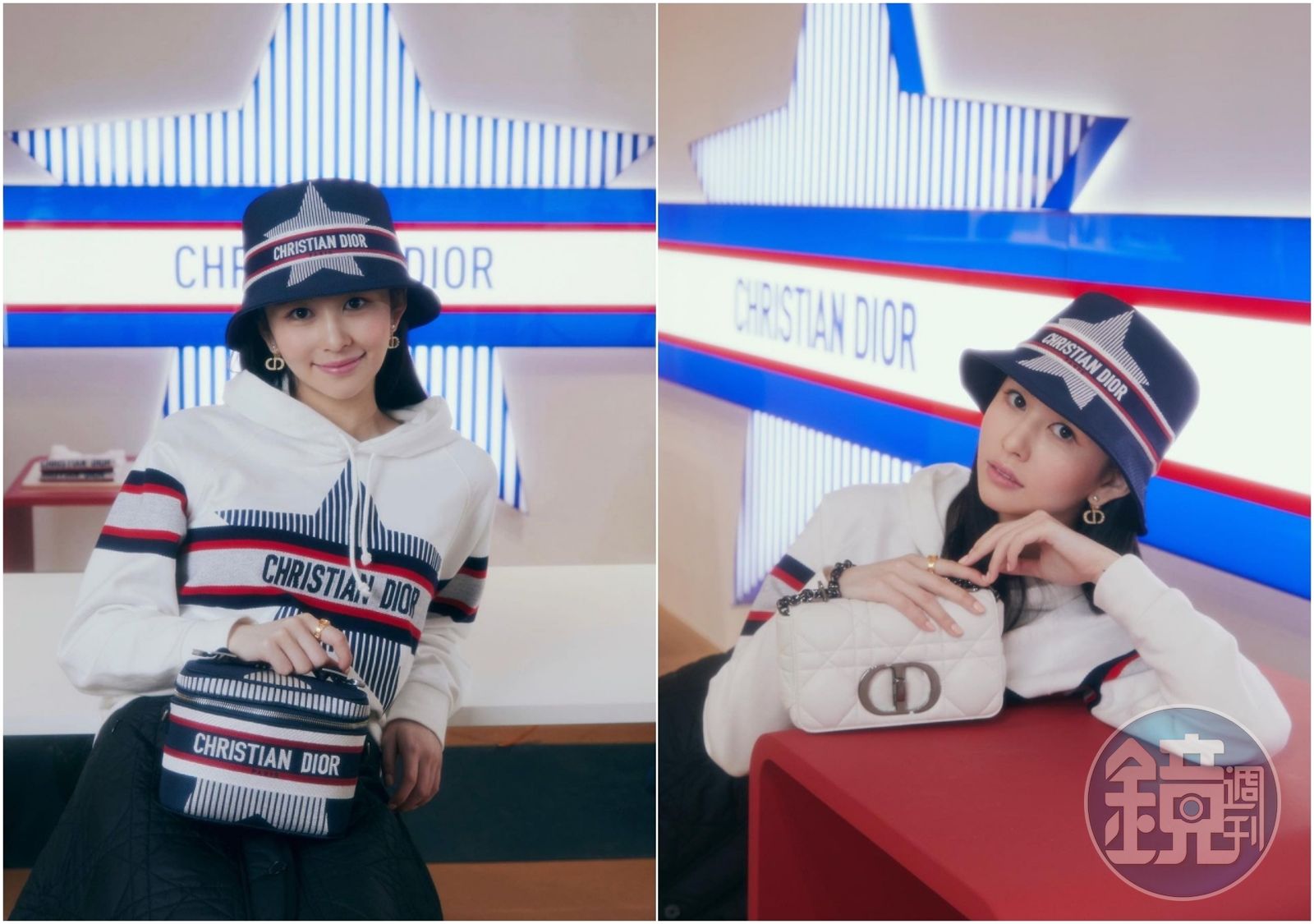 沈月在IG上po出自己穿著DiorAlps雪地系列的最新服飾。白色長袖連帽衫NT$73,000、藍色尼龍刺繡短簷漁夫帽NT$40,500。(翻攝自沈月IG)發布時間:2021.09.21 10:43 臺北時間