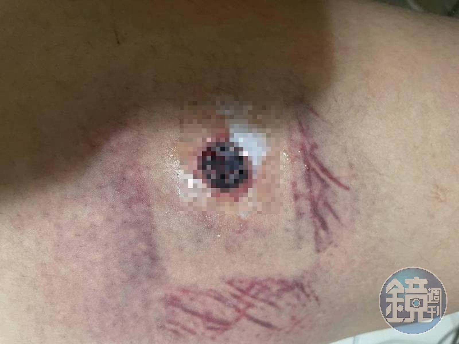 詎料,一進摩鐵房間,陳男一夥人、共6男1女,凶神惡煞的撲上來,痛毆林男,逼他交付投資尾款20萬,其友人行動也遭到控制;師虐過程,陳男等人還逼迫他全身脫光,強拍裸照,陳男甚至拿出鎮暴槍,朝被害人連轟3槍,其中1槍擊中被害人大腿,造成開放性傷口。