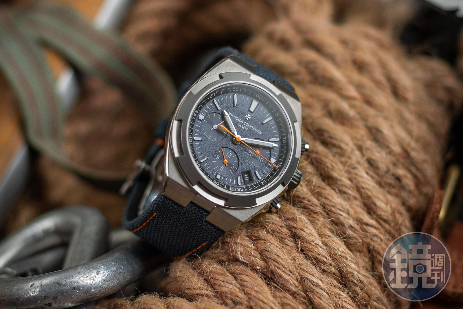 對比之下2019年與Cory Richards的合作錶款就有些不同了。江詩丹頓為他打造的那款Overseas Prototype,雖然同樣是圍繞在冒險、旅行這一個大方向主題,但一改江詩丹頓先前的形象,運用的配色更大膽鮮明,像是藍灰色的磨砂面盤與橘針,這些都是江詩丹頓過去很難出現的設計。江詩丹頓沿用2019年的設計,除了推出兩地時間腕錶以外,還加碼推出一款計時碼錶款式。這絕對是第三代Overseas系列裡頭最陽剛的款式。
