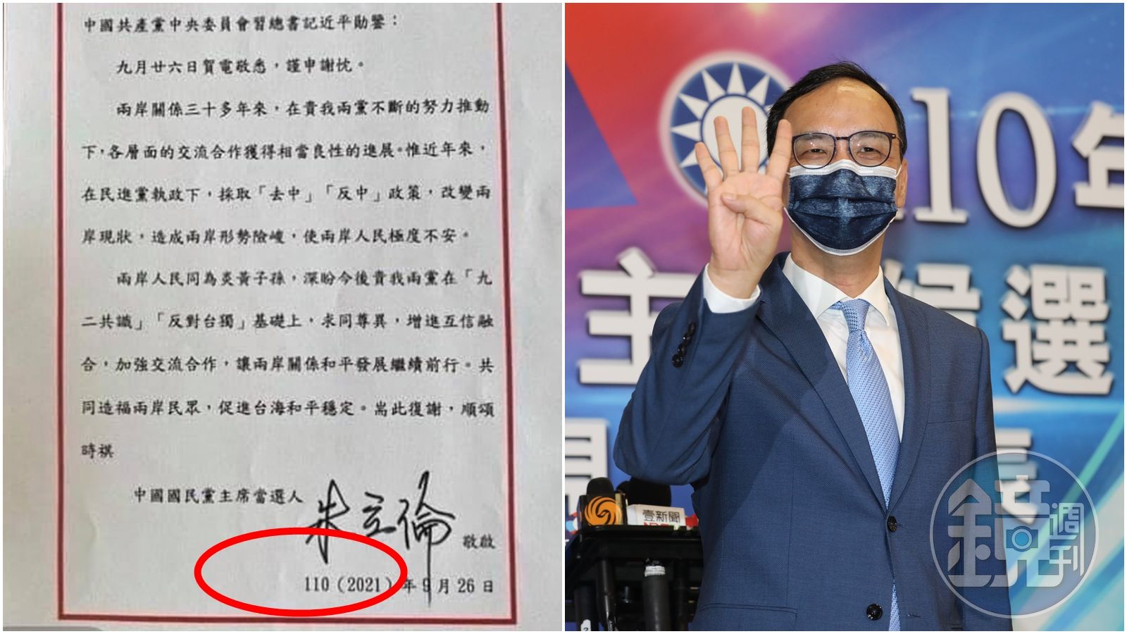 對於習近平賀電提及的「九二共識」「反台獨」「為國家謀統一」,鍾年晃直言,朱立倫的回應「將兩岸局勢複雜的責任全數推給民進黨『去中』、『反中』,完全忽視中國軍機繞台、惡意停止台灣水果進口,在國際上打壓台灣,阻斷我國採購疫苗等惡劣行徑。還呼應『九二共識』、『反台獨』。」