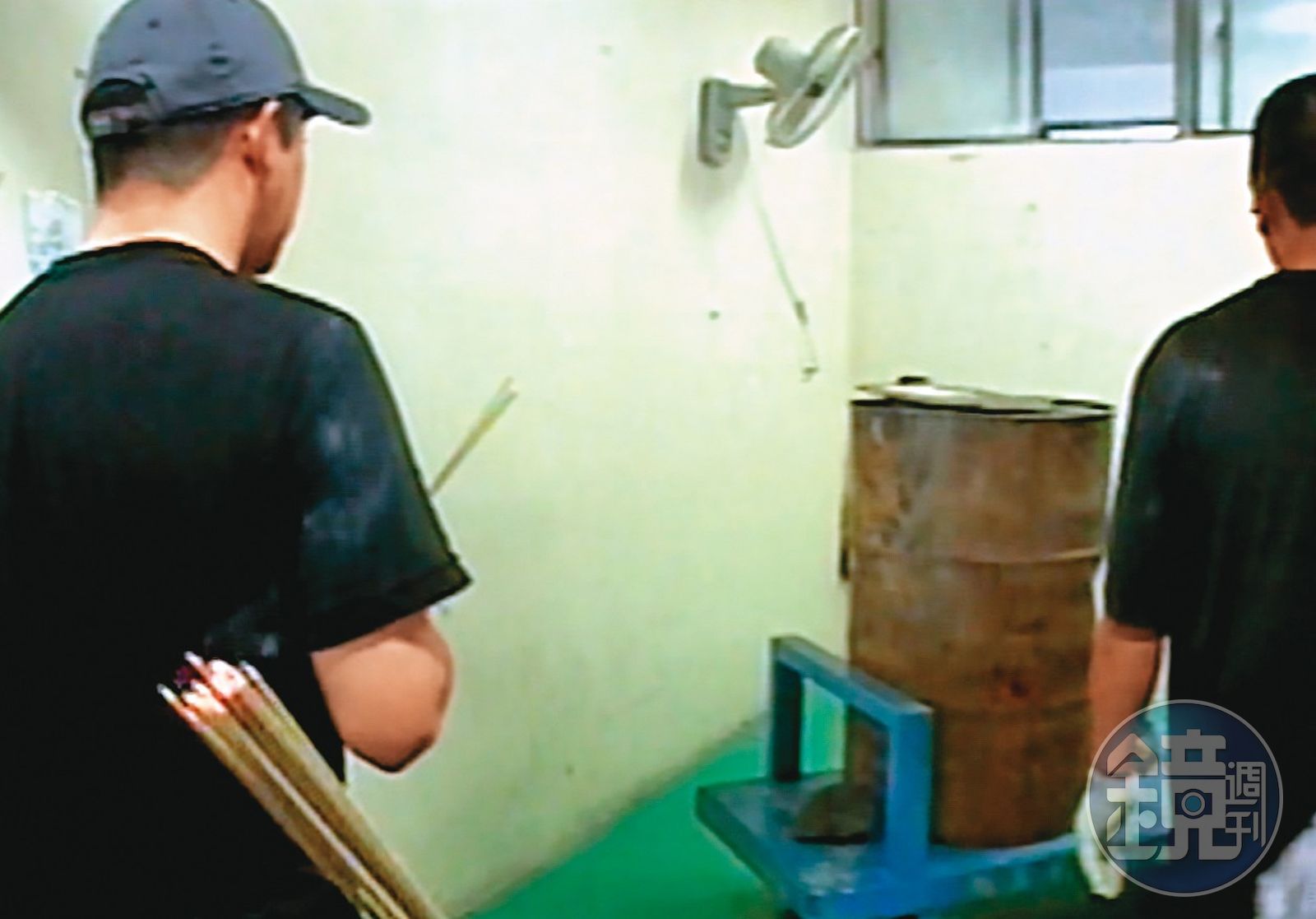張兒在現場焚香祭拜後,搜救人員將強力磁鐵丟入水中尋找藏屍鐵桶。(東森新聞提供)最後由10多名壯漢合力將鐵桶拉上岸,天空才又再度降下大雨,事後檢警開鑿鐵桶,只見張男早已血肉模糊,成為片片屍塊,死狀極其悽慘。