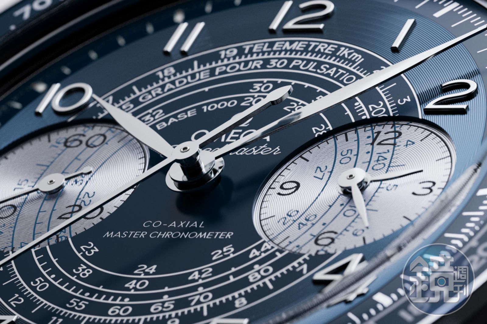 「Chronoscope」指的是精準測量時間的裝置,而這也並非歐米茄首度使用這個名字,品牌2007年就在De Ville家族推出過Co-Axial Chronoscope系列,是一款面盤設計大膽的計時碼錶。回到這次新的Chronoscope腕錶,歐米茄是以Speedmaster系列為基礎,從它的錶殼錶耳、計時按把的造型,以及細窄的外置錶圈,你仍能看到Speedmaster系列的特色;而最大的亮點來自於面盤,雙眼計時的配置,設計靈感來自一款1940年的古董計時碼錶,柳葉形指針、計時刻度的蝸型線條,都讓它看起來與過去的Speedmaster系列有很大的差異。