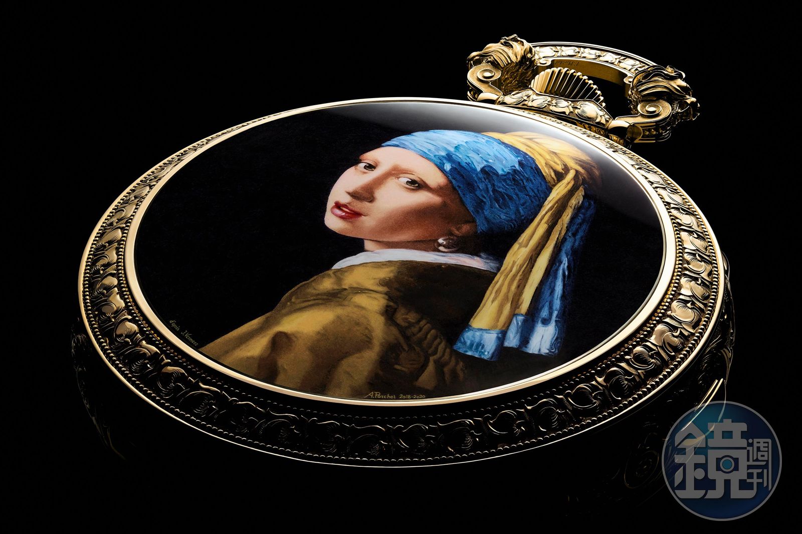 近期江詩丹頓又公開了一款為客人訂製的懷錶,配備西敏寺鐘聲自鳴報時與陀飛輪功能,不僅如此,在客人指定下,底蓋更由琺瑯藝術大師AnitaPorchet運用微繪琺瑯技藝,重現荷蘭著名繪畫巨匠Johannes Vermeer的經典名作《戴珍珠耳環的少女》(Girl with a Pearl Earring),讓這枚作品更添話題!