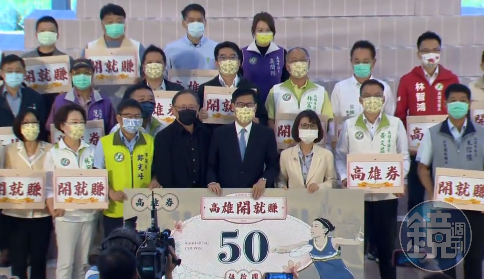 市長陳其邁感謝百貨、旅宿、餐飲業者成為發放高雄券的「振興夥伴」,民眾到這些地方消費,就可以拿到「全市通用」的高雄券,真的十分方便,現買、現換、現賺,真的是開就賺,他也特別感謝高雄銀行,高銀作為在地代表性的銀行,紙本方案中高雄券的保管、兌換以及核銷,高銀都擔任關鍵性的角色,提供高雄餐飲業者最好的服務。