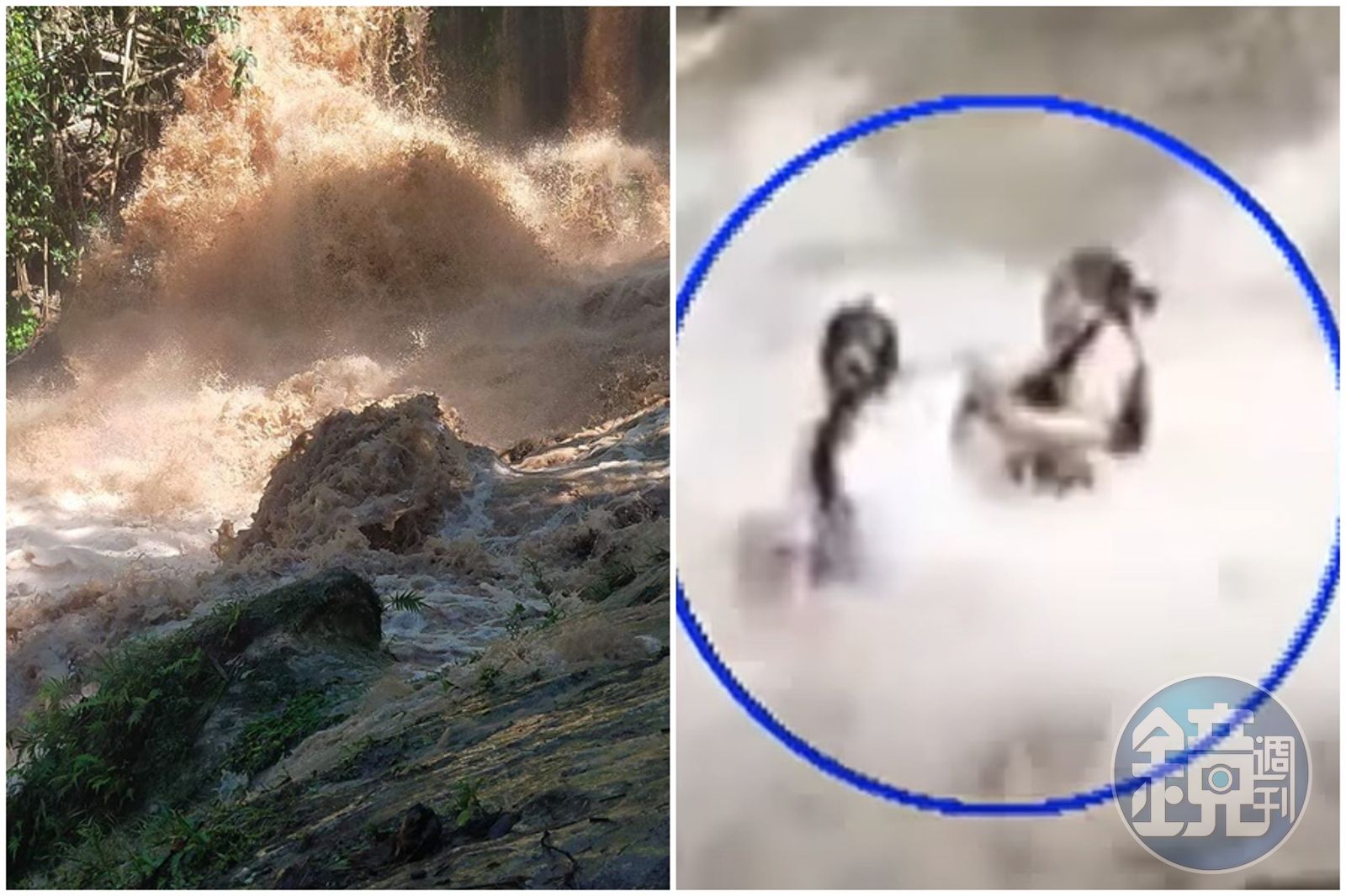 綜合外媒報導,菲律賓蒂努布丹瀑布26日發生一起意外,根據遊客用空拍機錄下的畫面,當時不少遊客聚集在瀑布下游處的岩石上,怎料突然間瀑布水位暴漲,幾秒鐘後便將反應不及的遊客沖到下游,畫面中一對母女就因逃生不及隨著遭急湍帶走。