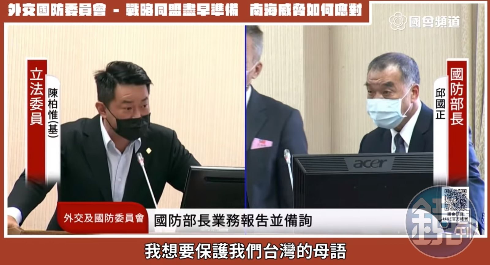 質詢過程中,邱國正未請立院安排的口譯人員翻譯,而是請國防部常務次長李宗孝協助,將對話轉譯後再回答陳柏惟;陳柏維表示,台灣是多元國家,不應勉強別人講什麼語言,若立院有設置翻譯,為何不能用台語來質詢,還進一步反嗆邱國正「鴨霸」,明明聽得懂台語還要裝聽不懂,並表示如果今天是外國人,邱國正不會強制要對方講中文,「為什麼我在這邊就要叫我講?」