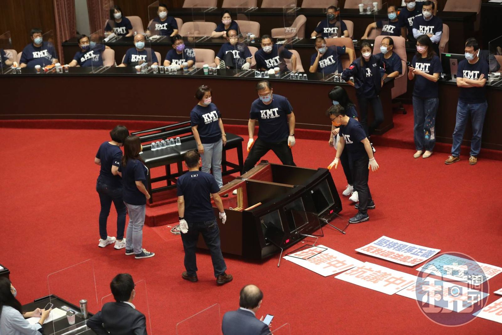 對於推翻議事台,國民黨團書記長陳玉珍怒嗆,是蔡英文總統說過,如果第一次聽不到,可以拍桌,再聽不到,可以翻桌。不過事實上,蔡英文的原話是:「如果第一次聽不見,可以大聲一點;第二次再聽不見,可以更大聲一點;第三再不回應的時候,你可以拍桌子。」