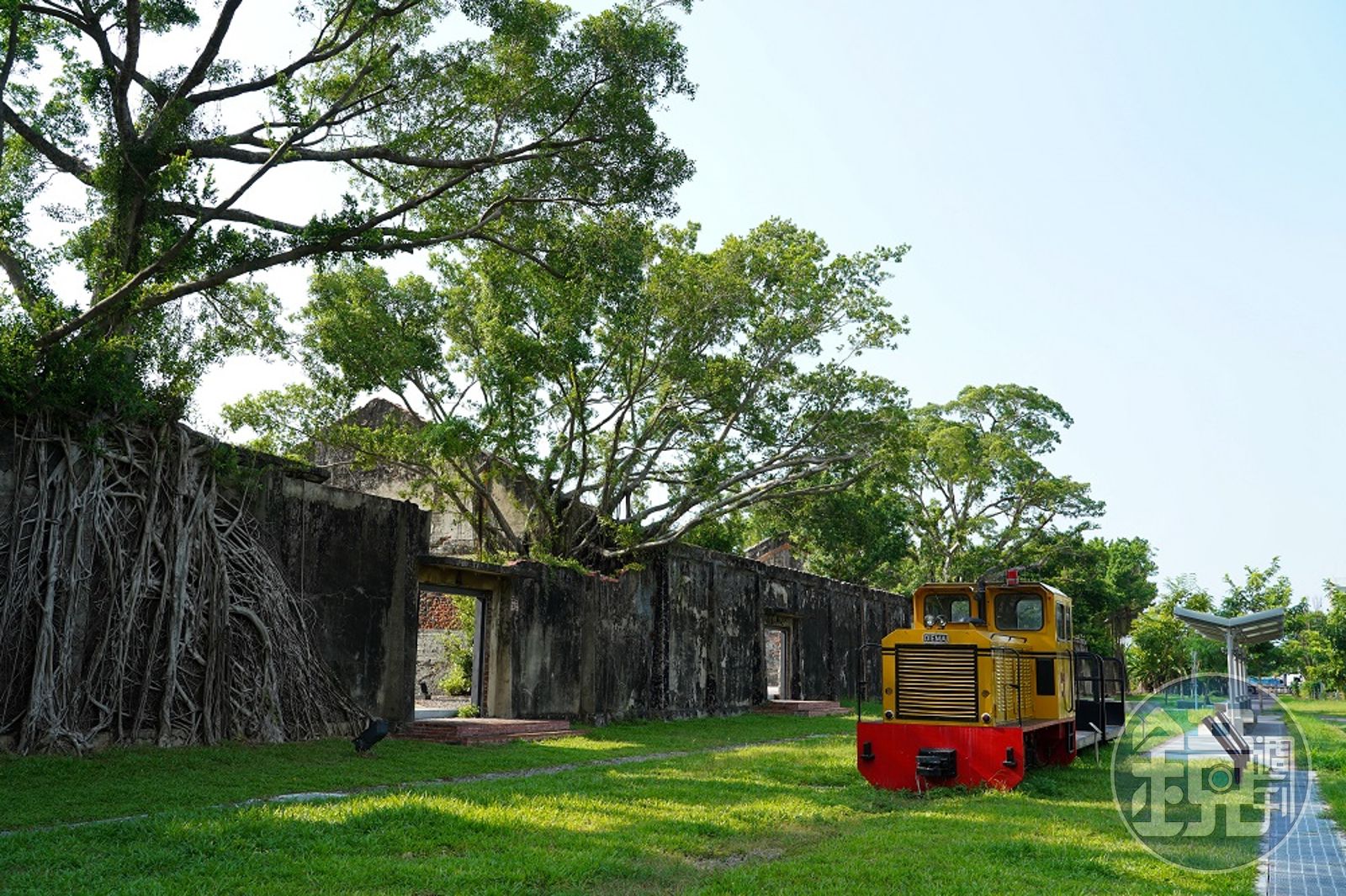 鹽水車站前尚存整排的倉庫,早年曾是軍方糧倉,後來因火災導致梁架崩塌,多年後,盤根錯結的老榕樹卻在此生長出茂盛枝葉,樹幹與倉庫外牆交纏,宛如吳哥窟神廟的奇景,也成為遊客流連忘返的拍照打卡景點。