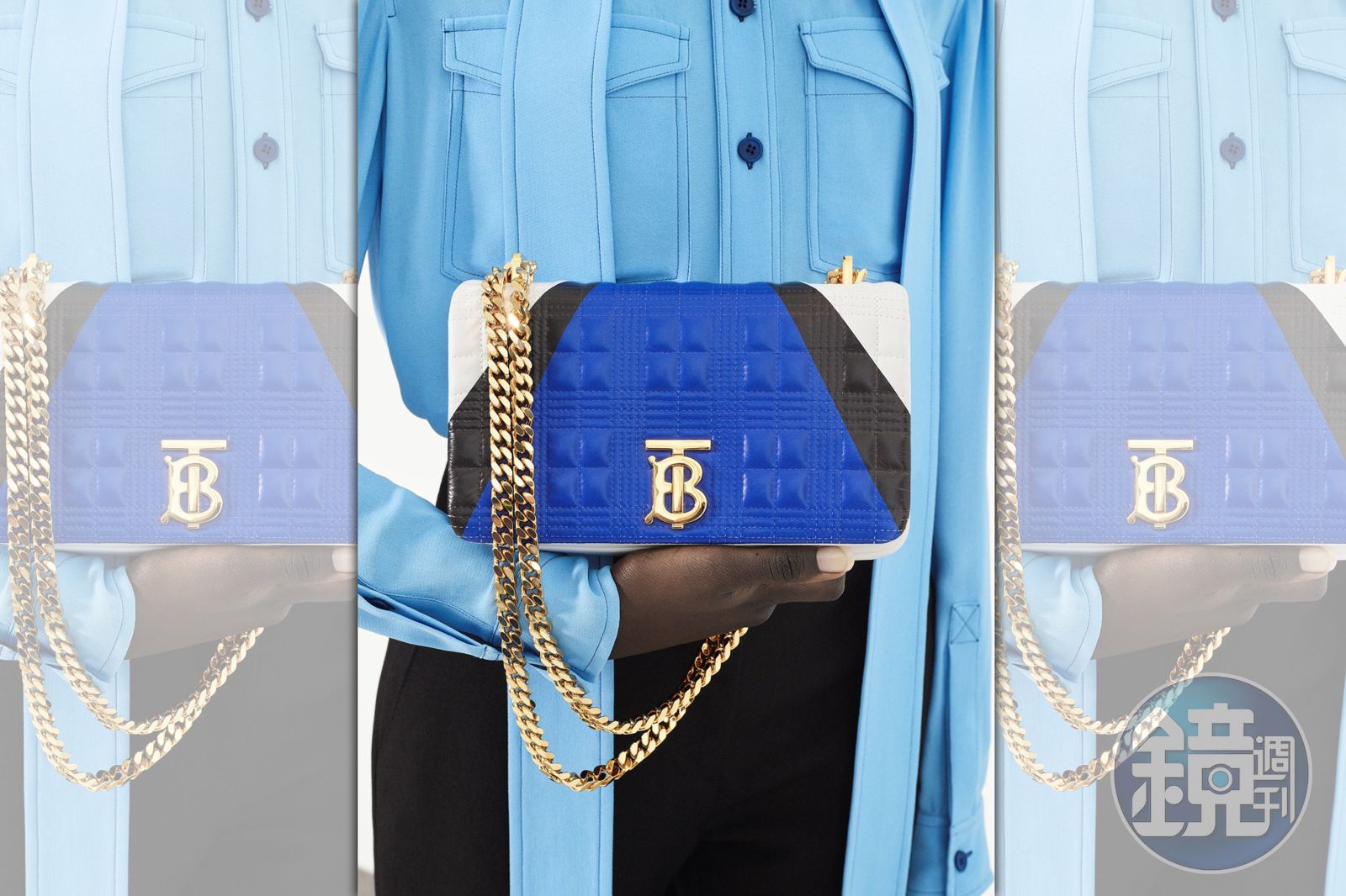 小型幾何印花絎縫羔羊皮Lola包。NT$65,000(BURBERRY提供)發布時間:2021.10.06 21:48 臺北時間