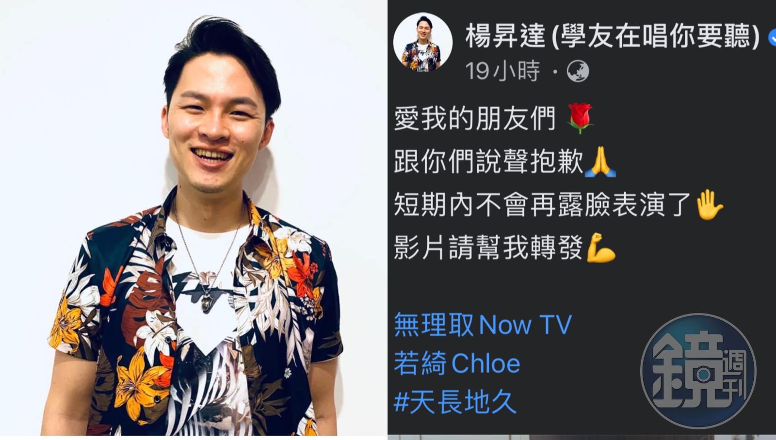 楊昇達表示自己大約是在9月21日當天,身體發生耳鳴現象,當時不以為意的他,也沒去看醫生,2天後卻發現自己的右半邊臉部麻痺,完全不能動,漱口也發生困難。他不忘自嘲「身為諧星演員的我,從小到大就好奇如何的情況下才能揣摩出一個非常優秀的雙面人的演出,我發現就是在得到顏面神經失調的時候。」隨即大笑,邪惡囂張的表情發揮得淋漓盡致,自己非常自豪。