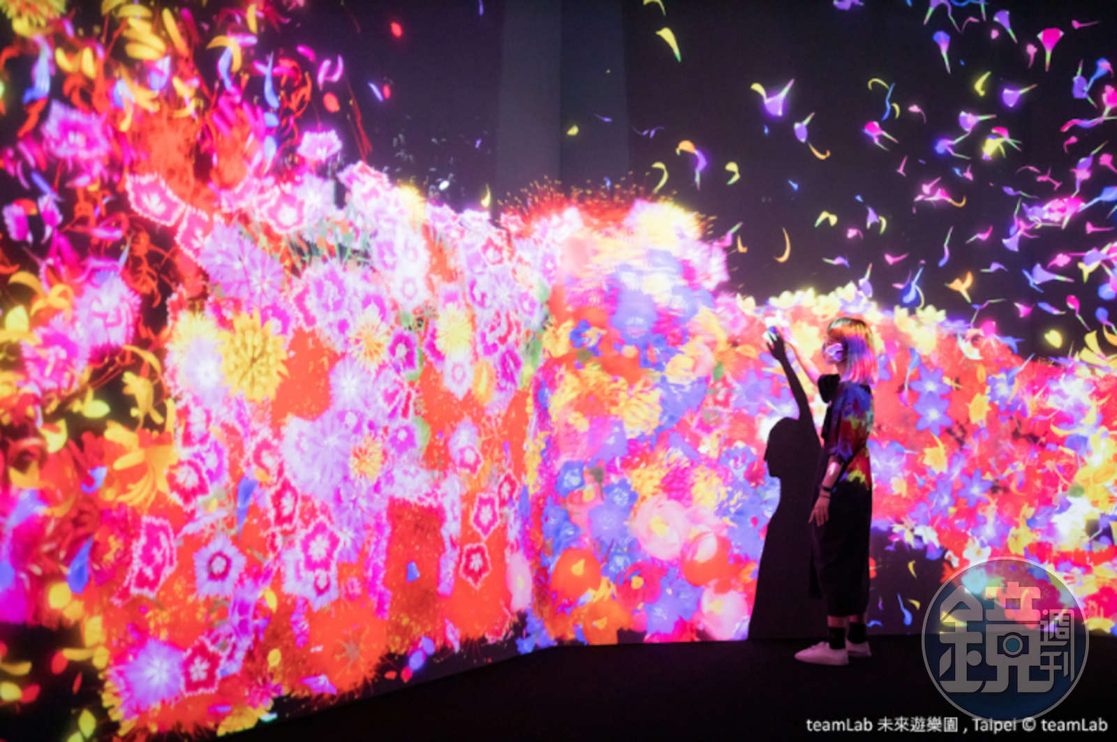 這次2021年台北場「teamLab未來遊樂園&與花共生的動物們」展期長達4個多月,從今年10月8日開始至明年2月28日,在台北士林科教館占地近700坪、挑高空間裡,透過科技、藝術、互動等元素,打造出9大互動空間。