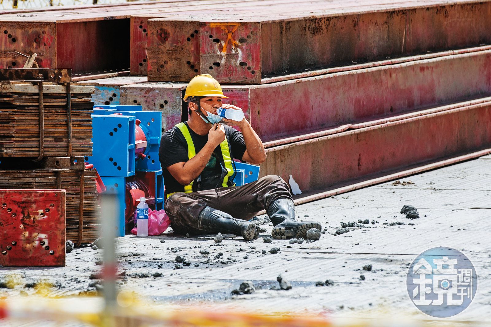 「一開始是岳父介紹我去基隆割草,也去河濱公園的蓄水池除過蓮花,後來就轉到這裡做鋼筋結構工人,主要就是搬合板那些下去給他們施工。每天1,500元,2星期領一次。」阿太說自己沒有一技之長,好在漢草(體格)好,可以做工地。「只是做習慣晚上,一開始改做白天真的很累,回到家吃個便當就睡著了。」