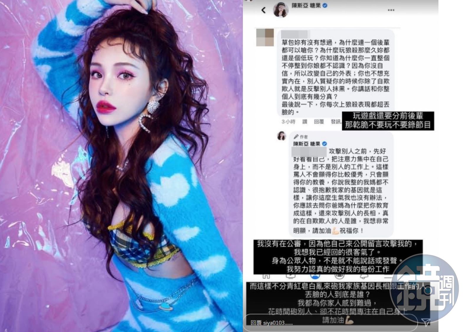 斯亞認為玩遊戲沒有什麼輩份之分,一切都是自然互動,如果刻意區分「那乾脆不要玩、不要錄節目」。並反酸網友「這樣不分青紅皂白,亂來砲我家族基因、長相跟工作的人,丟臉的人到底是誰?」她希望網友不要將時間花在「砲別人」上,多多專注在自己身上,這樣才是對的。