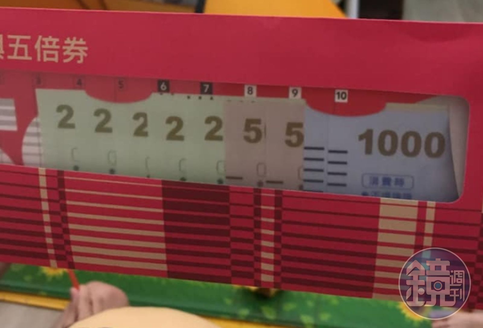 由於紙本五倍券由人工分裝,可能出現數量上的疏漏,因此在領取時超商或櫃台人員都會提醒要從信封上的視窗清點數量。先前傳出有人領到的五倍券變成「七倍券」,但這名女網友只剩「四倍券」,直喊真希望領到七倍券的民眾可以把多的券分給她。