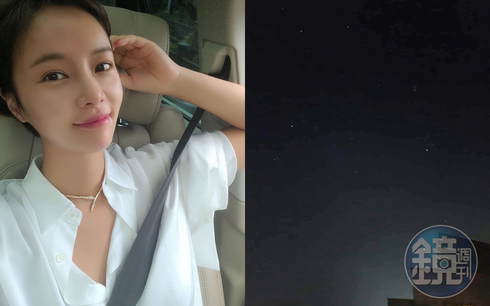 韓星黃靜茵喜懷第二胎,放上在濟州島仰望星空的照片與粉絲分享。(翻攝黃靜茵IG)發布時間:2021.10.12 17:55 臺北時間