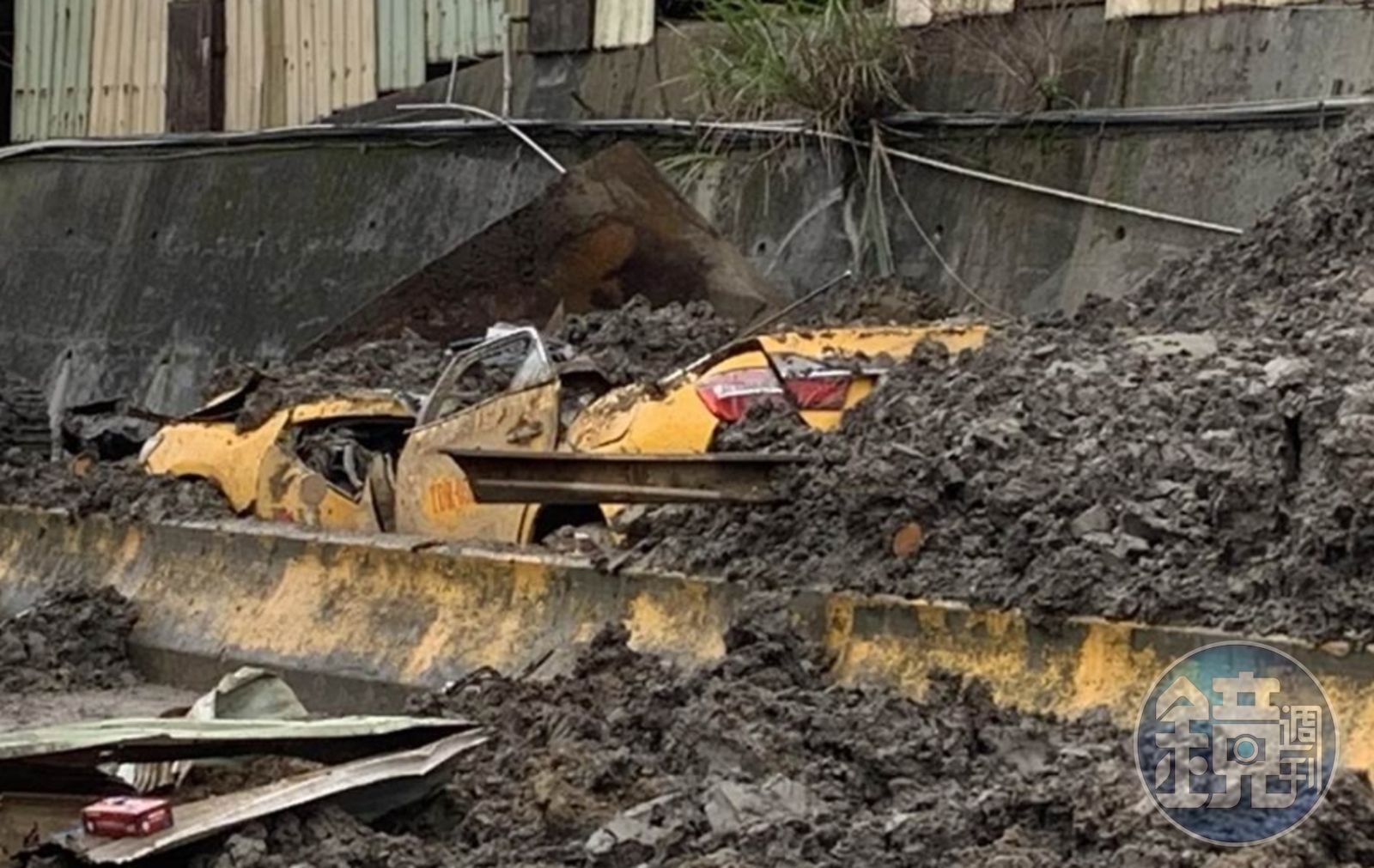 承恩砂石廠12日清晨發生牆面破洞的意外,土石大量外洩到馬路上,路過的56歲戴姓計程車駕駛瞬間連人帶車遭到掩埋,消防人員緊急將人救出後已回天乏術。