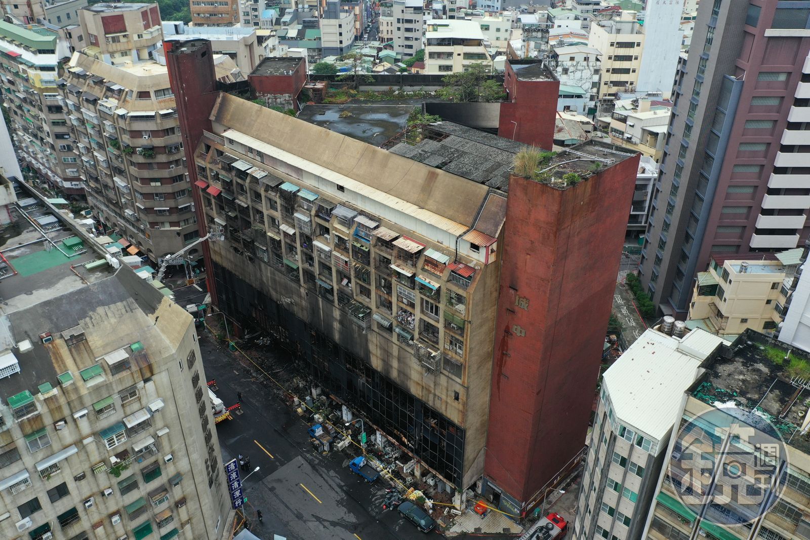 - 該棟大樓本來是住商混合建築,但自91年後,商業部分就沒有再使用,故未申報公安。加上裡面的堆置物、建材、裝潢並不符合防焰和消防標準,火勢燒起來後,玻璃帷幕與挑高,讓火場形同火爐。
