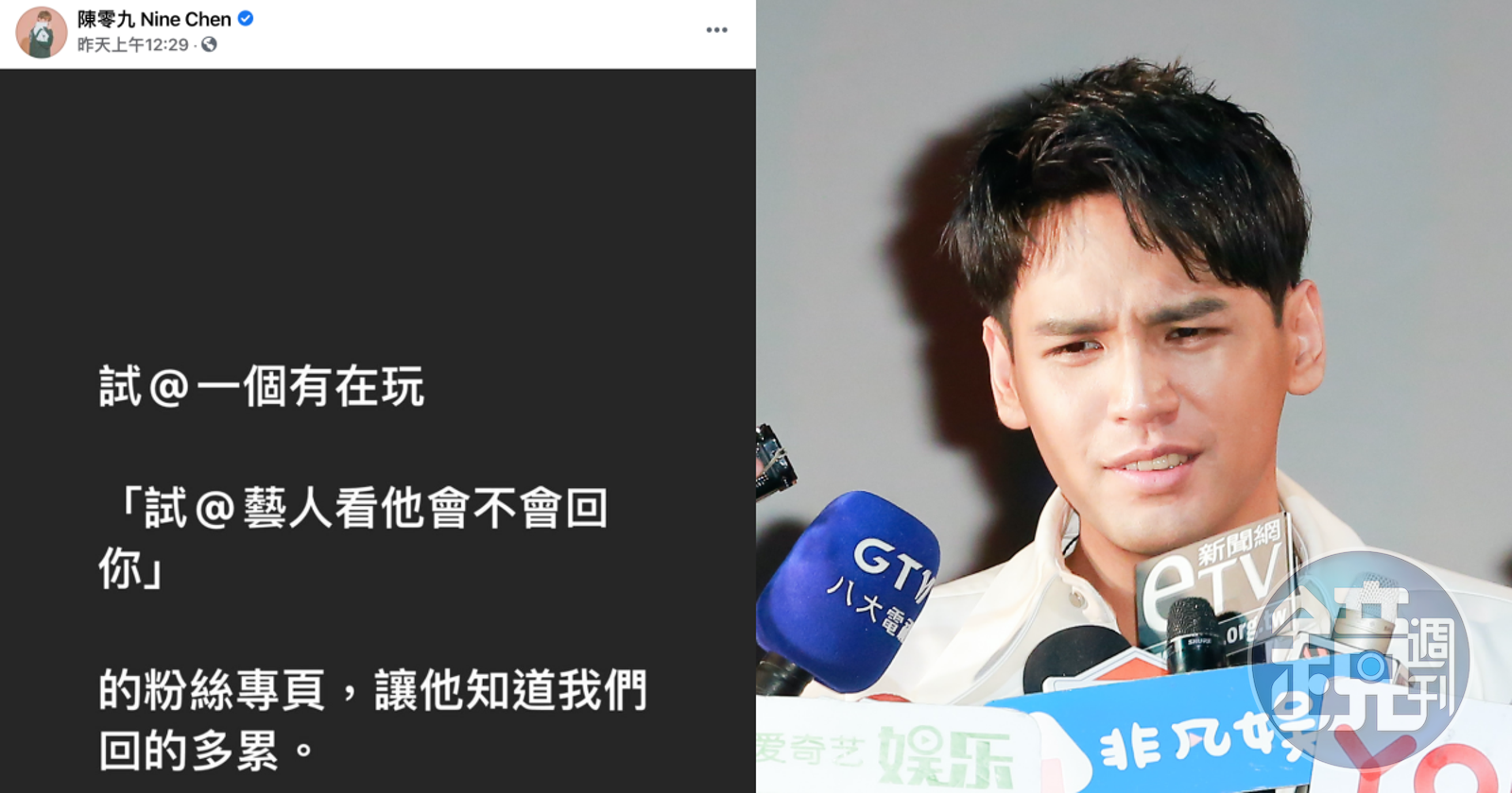 最近有不少粉絲專頁發文,要大家「@一個藝人看他會不會回你」,吸引許多網友在貼文留言標記自己的偶像,從天后蔡依林、天團五月天、歌王陳奕迅等,不少網紅、作家也紛紛被粉絲標記,並寫下一長串的「告白文」,連中職樂天桃猿隊投手陳禹勳也參一咖,標記本土樂團滅火器,希望能得到回覆。