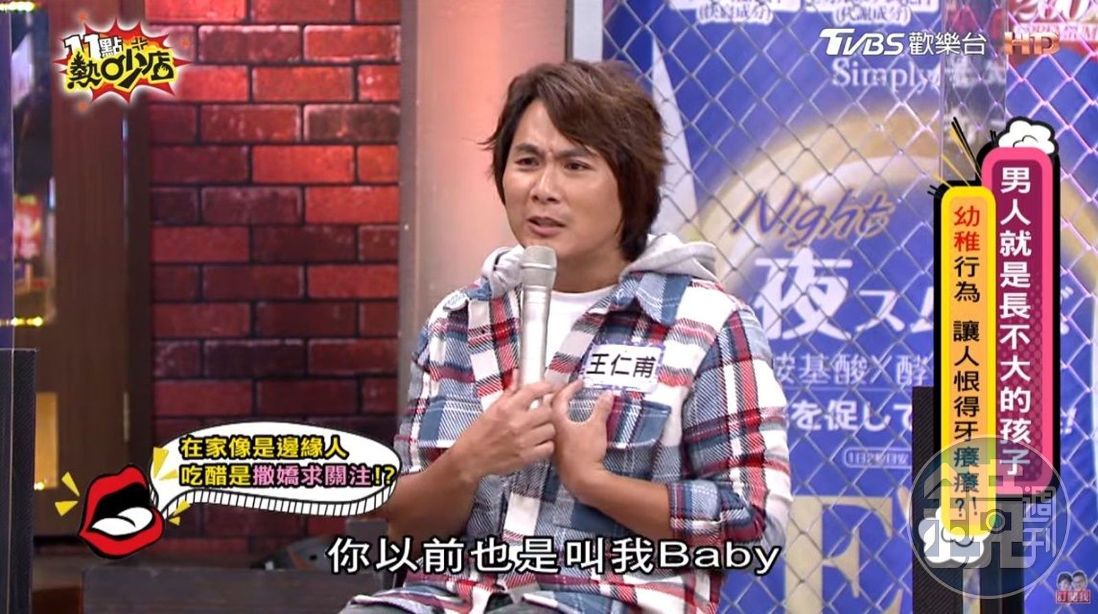 一家人在家用餐完後,季芹都會準備水果,切完後對著孩子大喊「2個寶貝來吃水果囉」,但這卻讓王仁甫感到受傷,認為妻子現在心目中的寶貝只有孩子,吃醋怒吼說「是3個寶貝」,坦言以前熱戀時也會叫他Baby,殊不知結婚生子後被老婆連名帶姓地叫。
