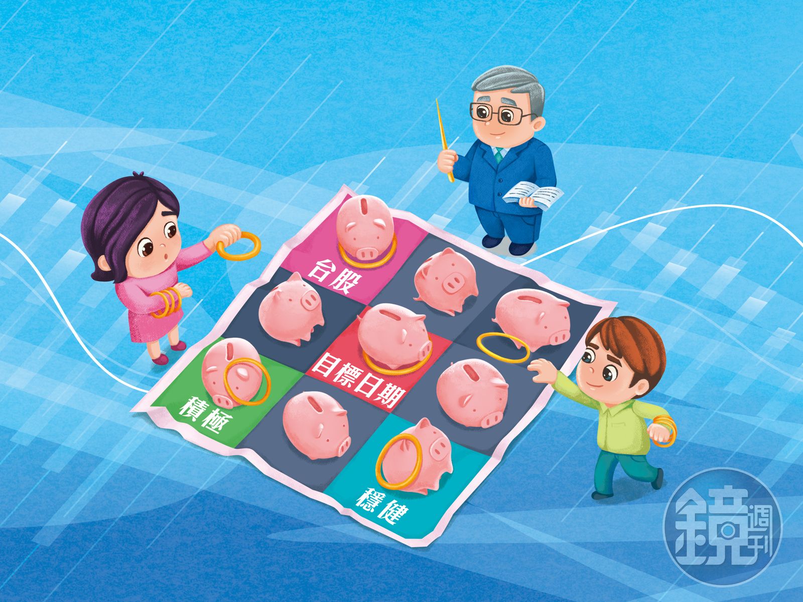 除了財金名師做法外,投資人也可依照自身年齡來進行挑選。國泰投信投資顧問部主管楊正豪表示,「35歲以下的投資新手,建議直接鎖定積極型標的;35歲以上至50歲,以穩健型為主;至於50歲以上,則可留意保守型基金。」